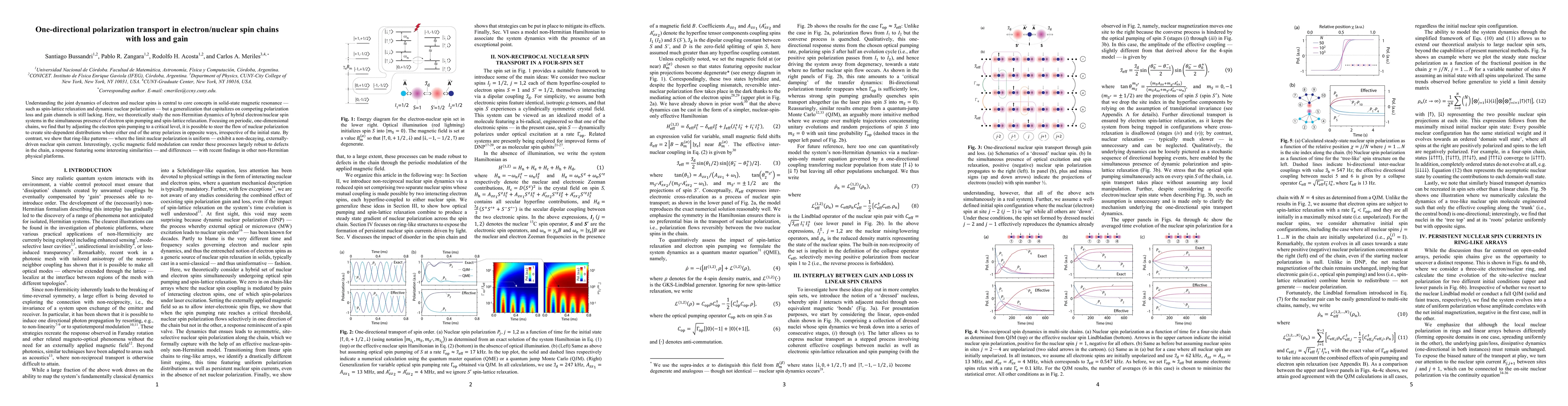 Understanding the joint dynamics of electron and nuclear spins is central to core concepts in solid-state magnetic resonance - such as spin-lattice relaxation and dynamic nuclear polarization - but a generalization that capitalizes on competing polarization loss and gain channels is still lacking. Here, we theoretically study the non-Hermitian dynamics of hybrid electron/nuclear spin systems in the simultaneous presence of electron spin pumping and spin-lattice relaxation. Focusing on periodic, one-dimensional chains, we find that by adjusting the electron spin pumping to a critical level, it is possible to steer the flow of nuclear polarization to create site-dependent distributions where either end of the array polarizes in opposite ways, irrespective of the initial state. By contrast, we show that ring-like patterns - where the limit nuclear polarization is uniform - exhibit a non-decaying, externally-driven nuclear spin current. Interestingly, cyclic magnetic field modulation can render these processes largely robust to defects in the chain, a response featuring some interesting similarities - and differences - with recent findings in other non-Hermitian physical platforms.