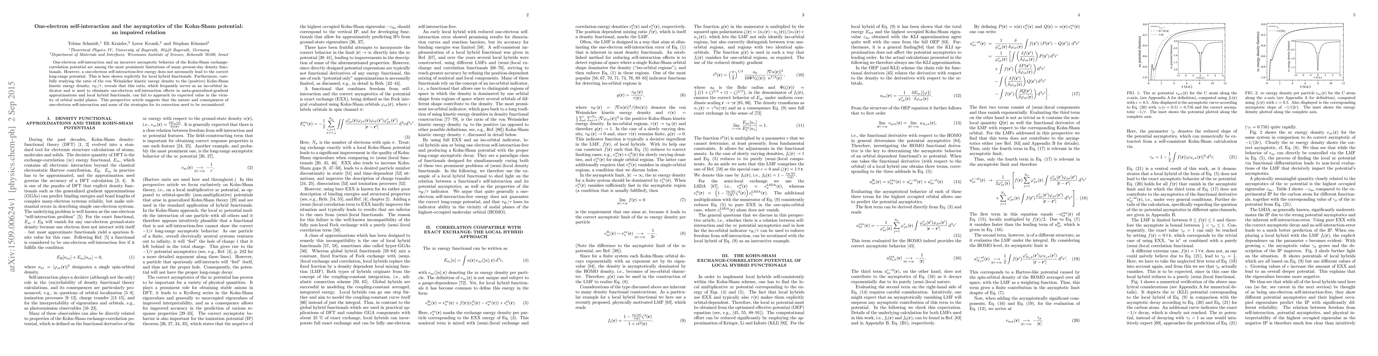 This paper discusses the limitations of current density functionals, particularly the one-electron self-interaction and incorrect asymptotic behavior of the Kohn-Sham potential. It argues that eliminating self-interaction does not guarantee correct long-range potentials and highlights failures in the ratio used to mitigate self-interaction near orbital nodal planes.