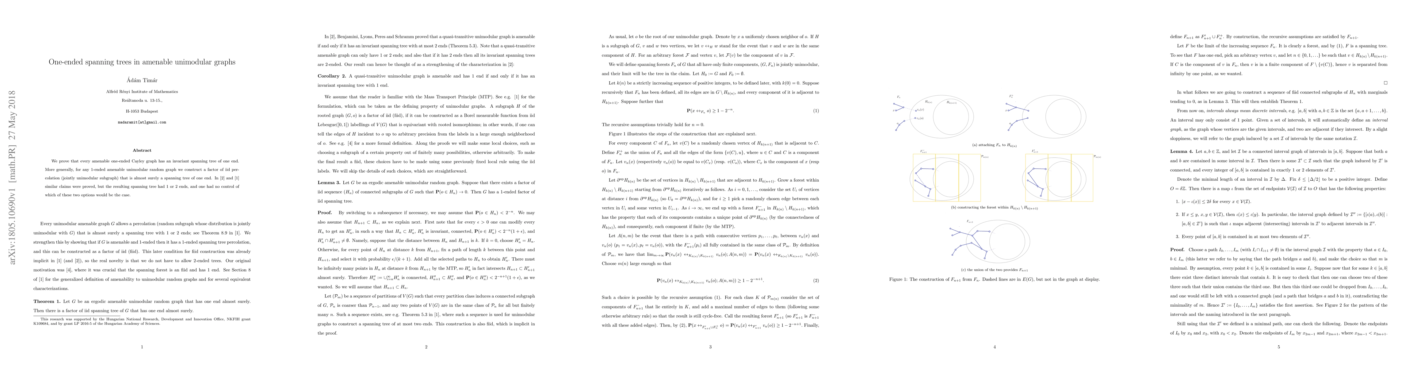 This paper proves the existence of an invariant spanning tree of one end in amenable one-ended Cayley graphs and constructs a spanning tree of one end in 1-ended amenable unimodular random graphs, contrasting previous results that lacked control over the number of ends.