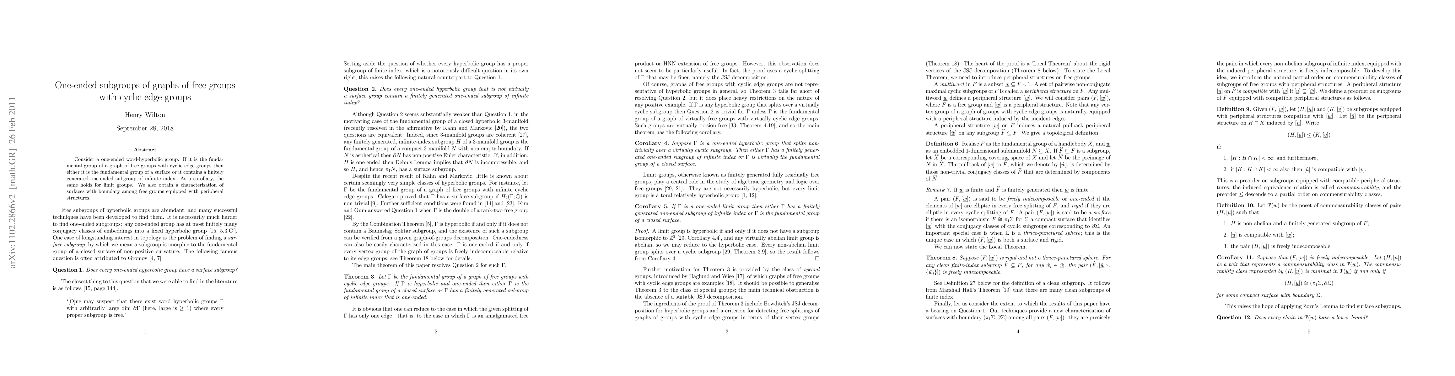 This paper explores one-ended subgroups in word-hyperbolic groups that arise as fundamental groups of graphs of free groups with cyclic edge groups, proving they either correspond to surface groups or contain a specific type of infinite index subgroup. It also extends these findings to limit groups and characterizes surfaces with boundary in such groups.