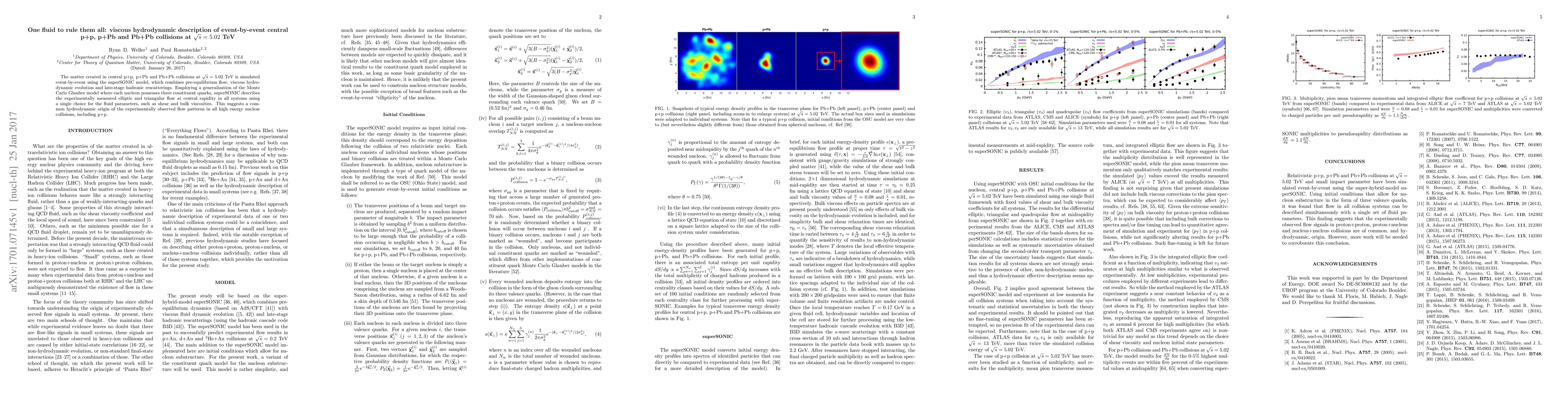 The superSONIC model simulates event-by-event central p+p, p+Pb, and Pb+Pb collisions at $\sqrt{s}=5.02$ TeV, revealing a common hydrodynamic origin for the observed flow patterns across different collision types using a single set of fluid parameters. This suggests a unified viscous hydrodynamic description for all high-energy nuclear collisions.