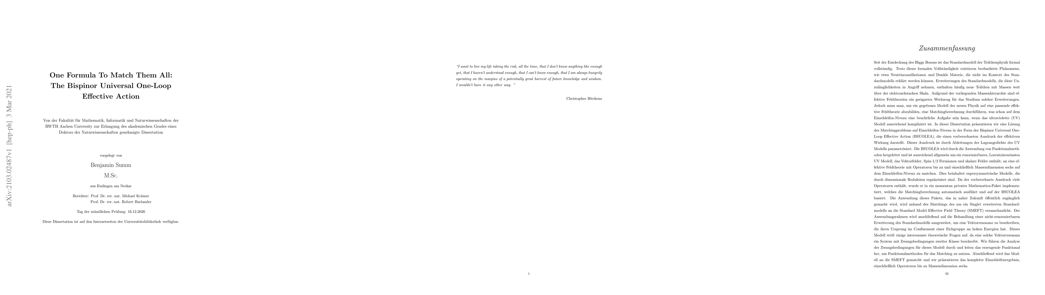 Researchers developed a pre-computed expression called the Bispinor Universal One-Loop Effective Action to match new particles with masses above the electroweak scale between ultraviolet models and effective field theory at one-loop level.