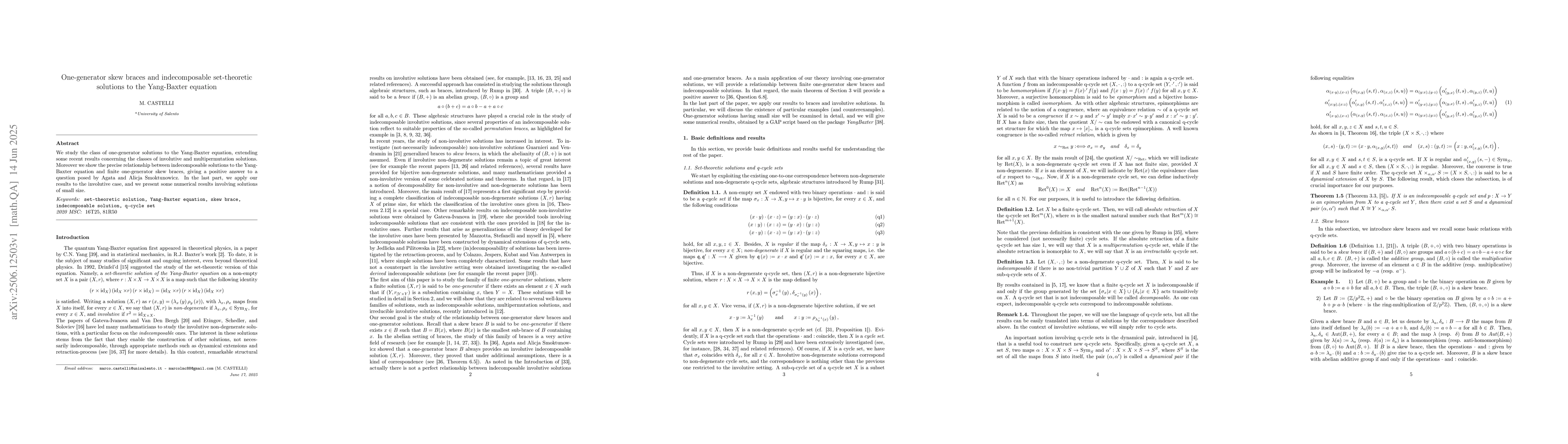 The paper introduces and utilizes the concept of one-generator skew braces to characterize indecomposable set-theoretic solutions to the Yang-Baxter equation, providing a comprehensive framework for their analysis.