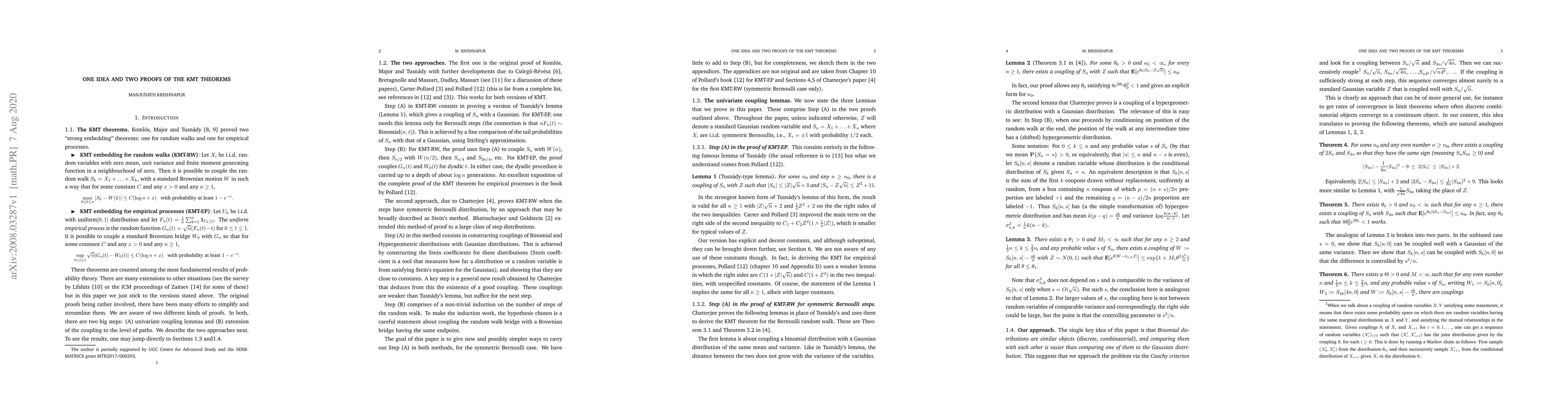 Two proofs of the Koml\'os-Major-Tusn\'ady embedding theorems, one for the uniform empirical process and one for the simple symmetric random walk, are given. More precisely, what are proved are the univariate coupling results needed in the proofs, such as Tusn\'{a}dy's lemma. These proofs are modifications of existing proof architectures, one combinatorial (the original proof with many modifications, due to Cs\"{o}rg\~o, R\'{e}v\'{e}sz, Bretagnolle, Massart, Dudley, Carter, Pollard etc.) and one analytical (due to Sourav Chatterjee). There is one common idea to both proofs: we compare binomial and hypergeometric distributions among themselves, rather than with the Gaussian distribution. In the combinatorial approach, this involves comparing Binomial(n,1/2) distribution with the Binomial(4n,1/2) distribution, which mainly involves comparison between the corresponding binomial coefficients. In the analytical approach, this reduces Chatterjee's method to coupling nearest neighbour Markov chains on integers so that they stay close.