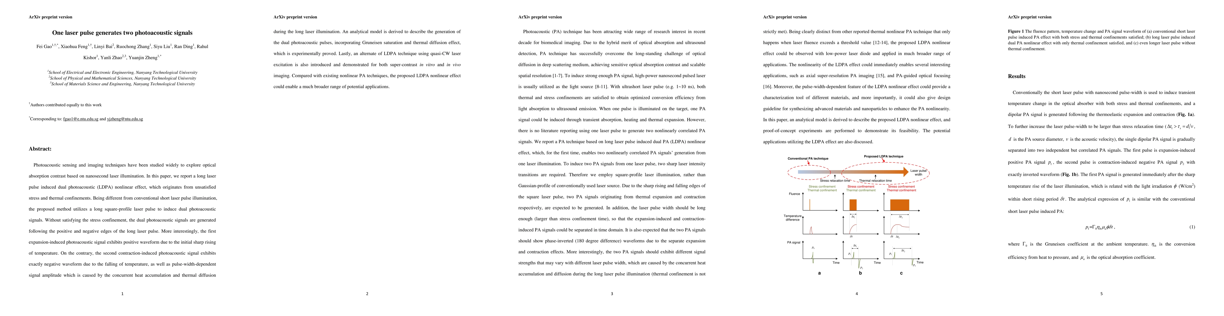 This paper reports a novel dual photoacoustic (LDPA) nonlinear effect induced by long laser pulses, generating two distinct photoacoustic signals due to stress and thermal confinements. An analytical model explains the waveforms and amplitude variations, and the technique shows promise for enhanced contrast in imaging applications.