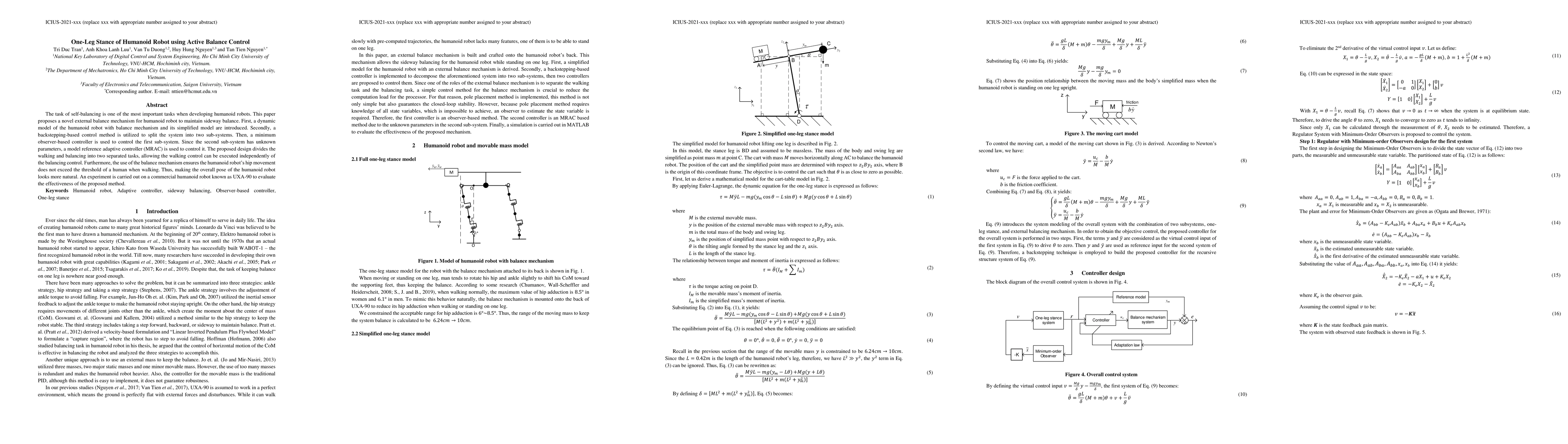 This paper proposes a novel balance mechanism and control method for a humanoid robot to achieve natural walking while maintaining sideway balance, using backstepping and model reference adaptive control. Experiments on the UXA-90 robot demonstrate the effectiveness of the proposed design.