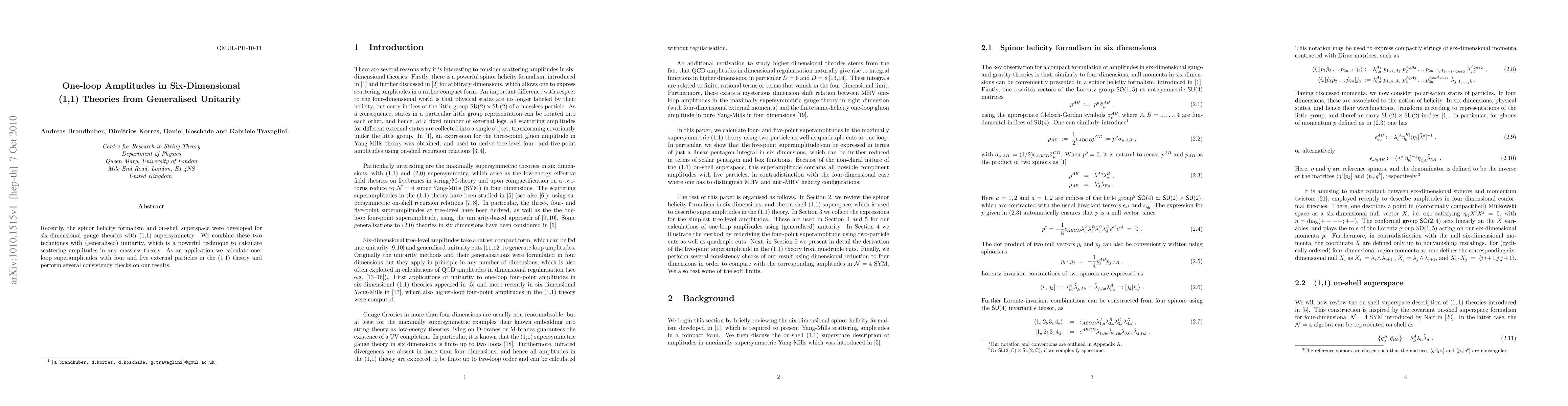This paper combines spinor helicity formalism and on-shell superspace with generalised unitarity to calculate one-loop superamplitudes in six-dimensional (1,1) gauge theories. The authors compute amplitudes for four and five external particles and validate their results through consistency checks.