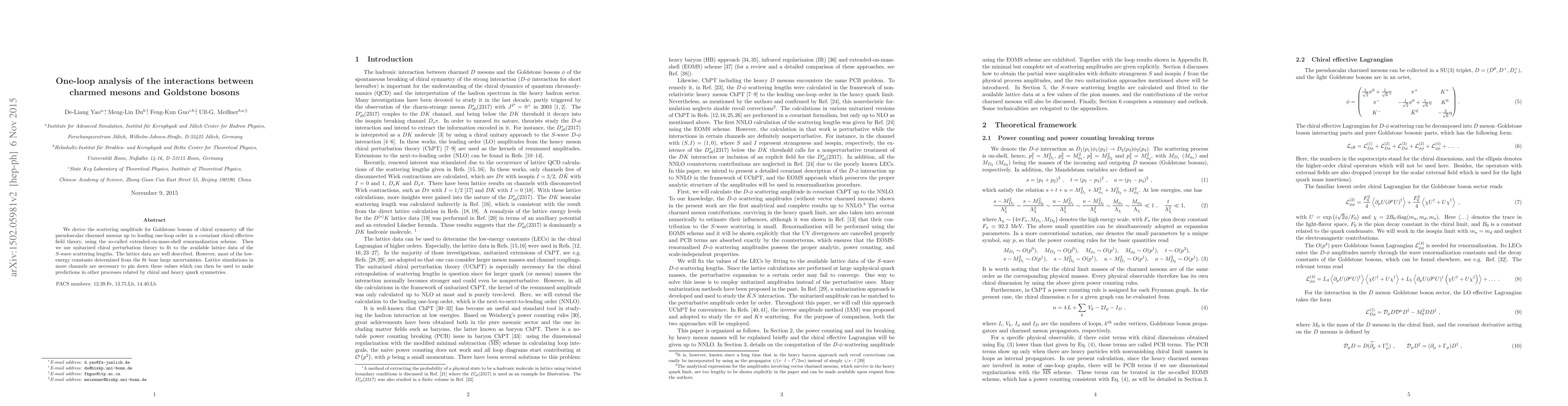 This paper derives the scattering amplitude for Goldstone bosons interacting with pseudoscalar charmed mesons up to one-loop order using covariant chiral effective field theory. The results fit well with lattice data but have large uncertainties in the low-energy constants, which require further lattice simulations to refine.