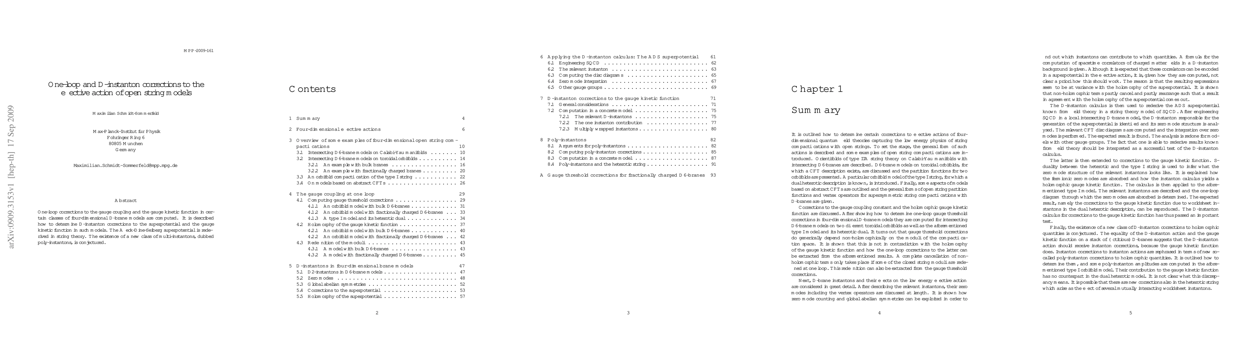 This paper computes one-loop corrections in four-dimensional D-brane models and explores D-instanton effects on the superpotential and gauge kinetic function, rederives the Affleck-Dine-Seiberg superpotential in string theory, and proposes a new class of multi-instantons called poly-instantons.