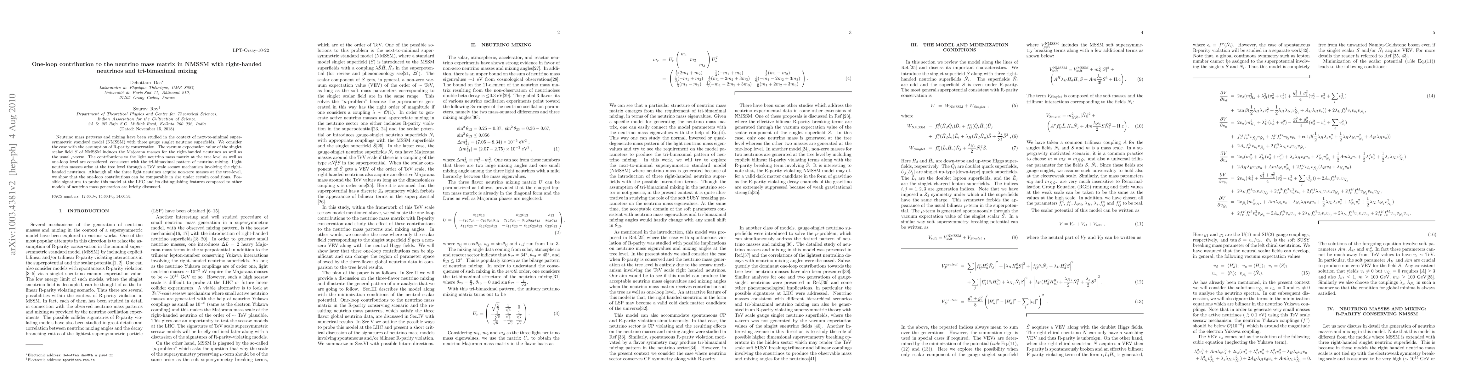This paper investigates the one-loop contributions to the neutrino mass matrix in the next-to-minimal supersymmetric standard model (NMSSM) with right-handed neutrinos, focusing on scenarios that align with the tri-bimaximal mixing pattern. The study finds that under certain conditions, one-loop contributions can be comparable in size to tree-level contributions.
