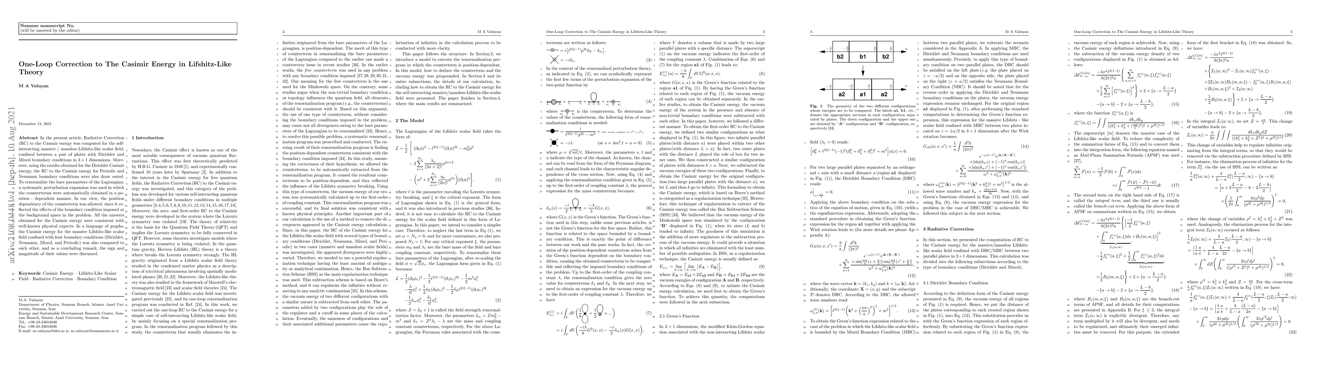 In the present article, Radiative Correction (RC) to the Casimir energy was computed for the self-interacting massive/massless Lifshitz-like scalar field, confined between a pair of plates with Dirichlet and Mixed boundary conditions in $3+1$ dimensions. Moreover, using the results obtained for the Dirichlet Casimir energy, the RC to the Casimir energy for Periodic and Neumann boundary conditions were also draw outed. To renormalize the bare parameters of the Lagrangian, a systematic perturbation expansion was used in which the counterterms were automatically obtained in a position-dependent manner. In our view, the position dependency of the counterterm was allowed, since it reflected the effects of the boundary condition imposed or the background space in the problem. All the answers obtained for the Casimir energy were consistent with well-known physical expects. In the language of graphs, the Casimir energy for the massive Lifshitz-like scalar field confined with four boundary conditions (Dirichlet, Neumann, Mixed, and Periodic) was also compared to each other, and as a concluding remark, the sign and magnitude of their values were discussed.
