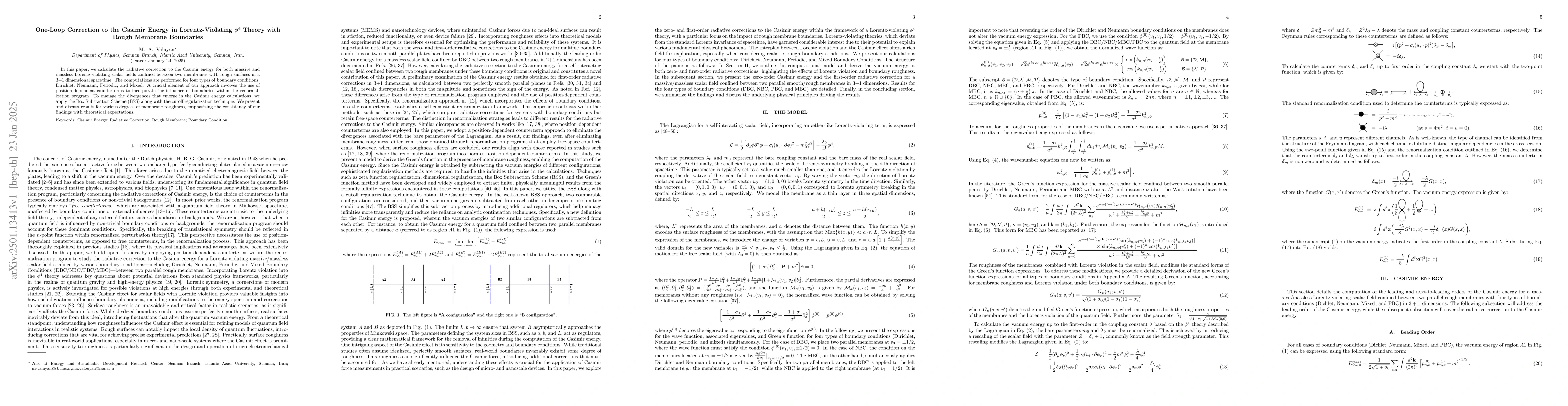 This research calculates the one-loop correction to the Casimir energy for Lorentz-violating scalar fields confined between rough membrane boundaries in 3+1 dimensions, using position-dependent counterterms and the Box Subtraction Scheme to manage divergences. Results for different boundary conditions show consistency with theoretical predictions across varying membrane roughness levels.