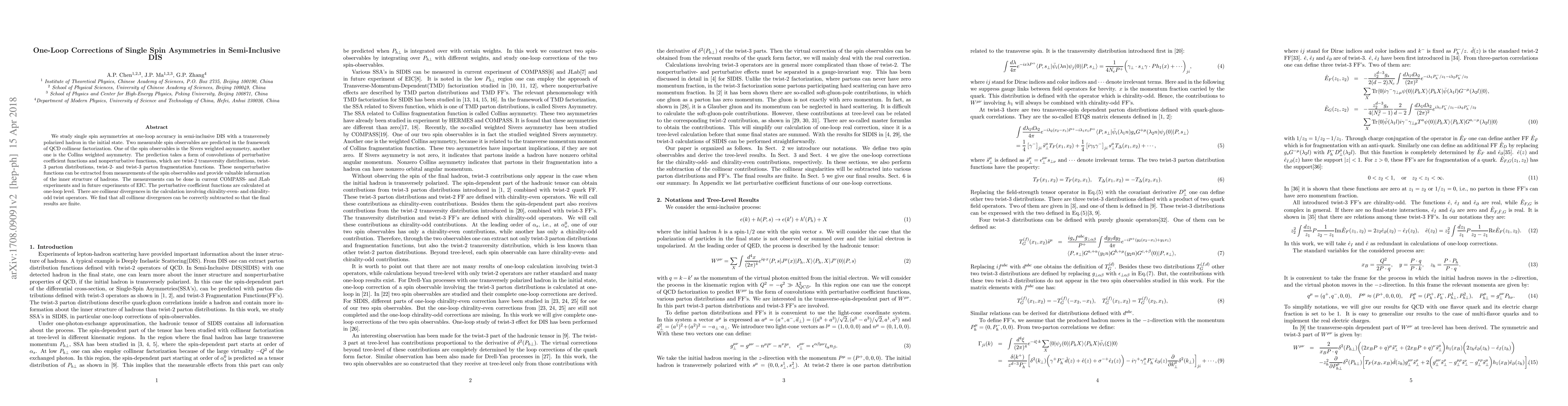 This paper investigates single spin asymmetries at one-loop accuracy in semi-inclusive deep inelastic scattering (DIS) with a transversely polarized hadron, predicting two measurable spin observables within QCD collinear factorization. The study finds that all collinear divergences can be subtracted, leading to finite results for the perturbative coefficient functions.