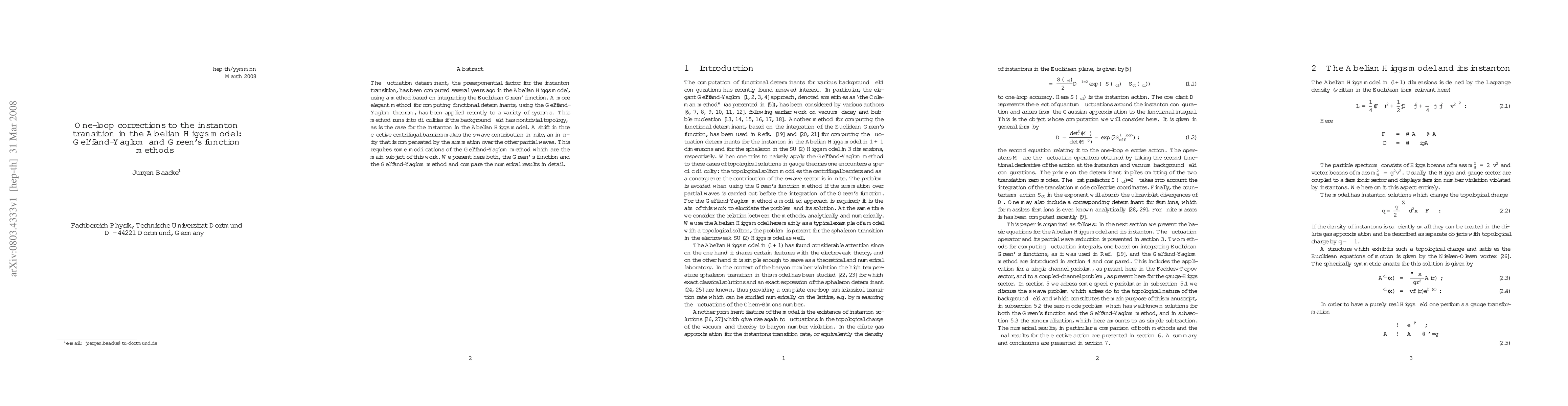 This paper investigates one-loop corrections to the instanton transition in the Abelian Higgs model using both the Gel'fand-Yaglom theorem and Green's function methods. It addresses the challenges encountered when applying the Gel'fand-Yaglom method to systems with nontrivial topology, proposing modifications to resolve these issues and comparing the results from both methods.