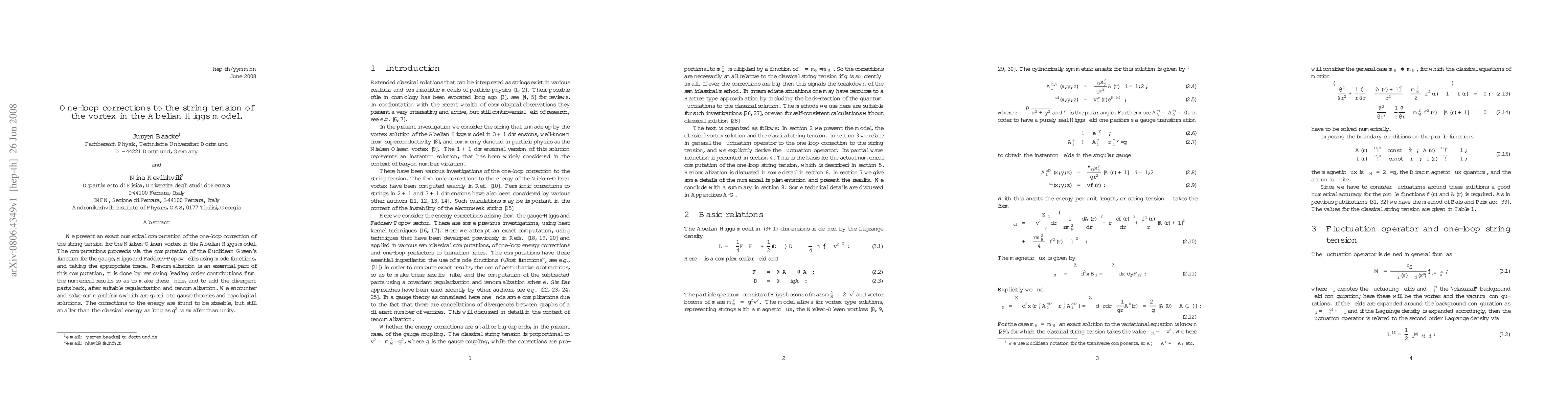 This paper presents an exact numerical computation of one-loop corrections to the string tension of the Nielsen-Olesen vortex in the Abelian Higgs model, employing Euclidean Green's functions and renormalization techniques to address gauge theory and topological issues. The corrections are significant but remain smaller than the classical energy when the coupling constant is less than one.