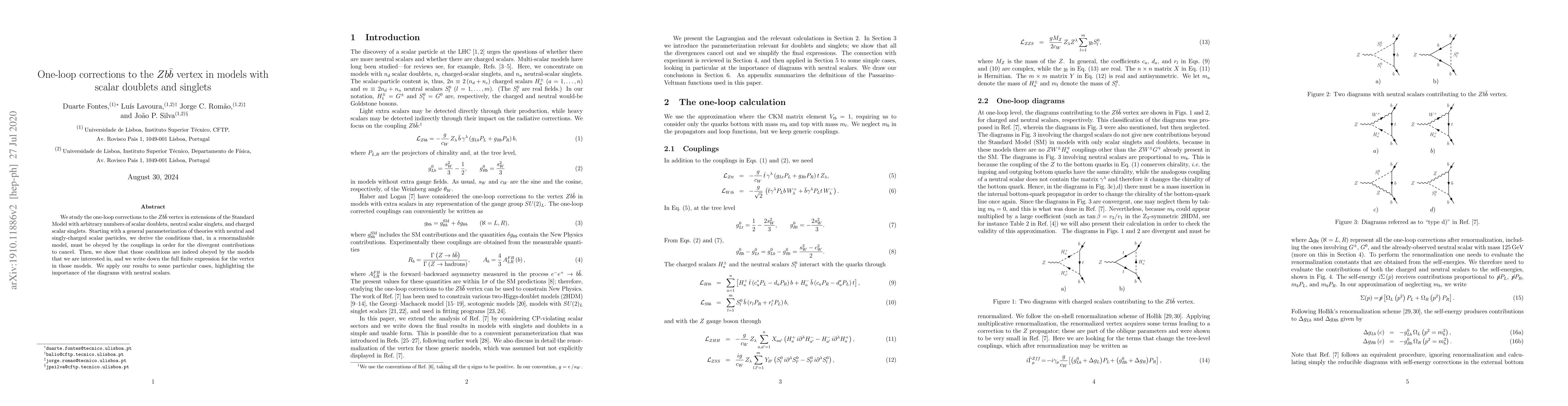 We study the one-loop corrections to the $Zb\bar{b}$ vertex in extensions of the Standard Model with arbitrary numbers of scalar doublets, neutral scalar singlets, and charged scalar singlets. Starting with a general parameterization of theories with neutral and singly-charged scalar particles, we derive the conditions that, in a renormalizable model, must be obeyed by the couplings in order for the divergent contributions to cancel. Then, we show that those conditions are indeed obeyed by the models that we are interested in, and we write down the full finite expression for the vertex in those models. We apply our results to some particular cases, highlighting the importance of the diagrams with neutral scalars.