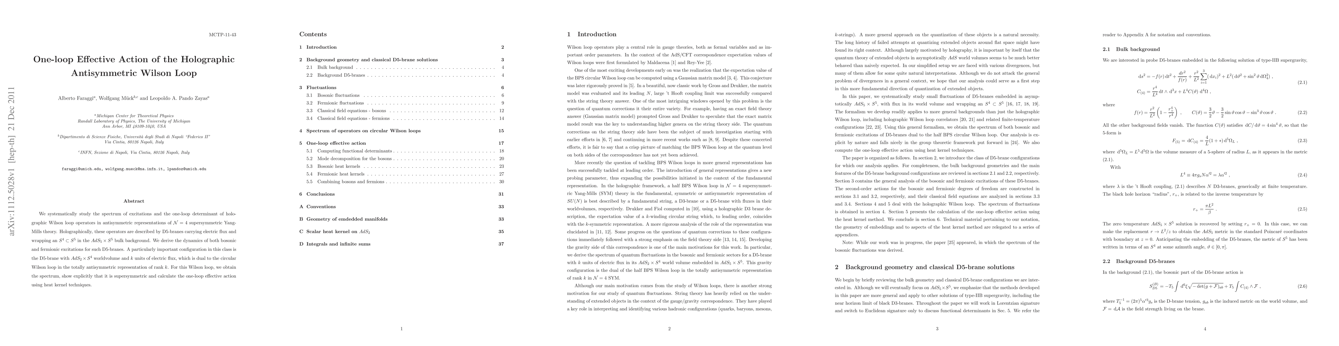 This paper investigates the one-loop effective action for the holographic antisymmetric Wilson loop in $\mathcal{N}=4$ supersymmetric Yang-Mills theory, focusing on D5-branes wrapping $S^4$ in $AdS_5\times S^5$. It derives the dynamics for bosonic and fermionic excitations and computes the one-loop determinant using heat kernel techniques, proving the spectrum's supersymmetric nature.