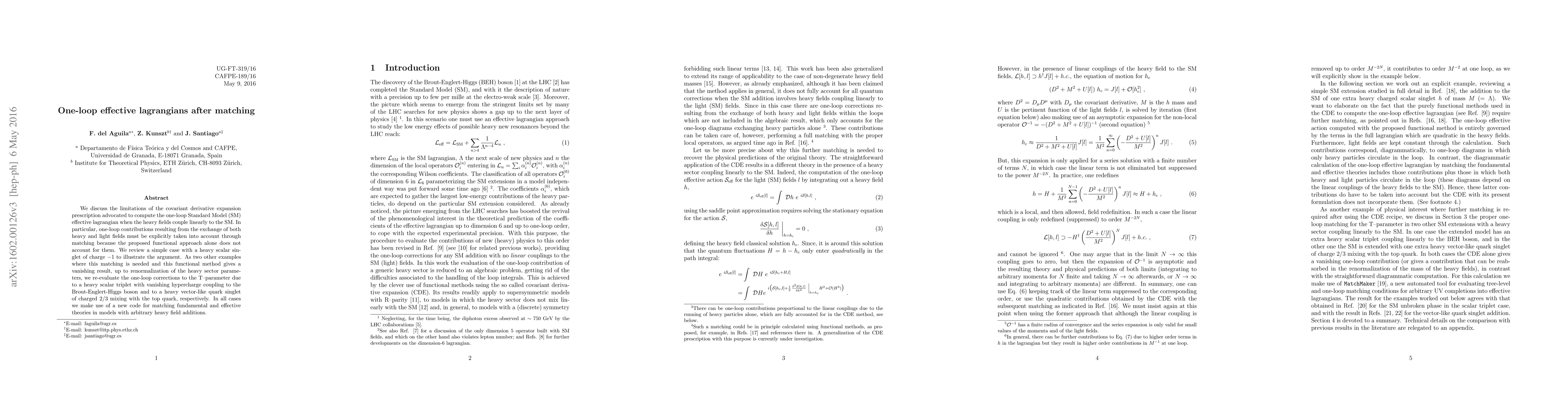 We discuss the limitations of the covariant derivative expansion prescription advocated to compute the one-loop Standard Model (SM) effective lagrangian when the heavy fields couple linearly to the SM. In particular, one-loop contributions resulting from the exchange of both heavy and light fields must be explicitly taken into account through matching because the proposed functional approach alone does not account for them. We review a simple case with a heavy scalar singlet of charge $-1$ to illustrate the argument. As two other examples where this matching is needed and this functional method gives a vanishing result, up to renormalization of the heavy sector parameters, we re-evaluate the one-loop corrections to the T--parameter due to a heavy scalar triplet with vanishing hypercharge coupling to the Brout-Englert-Higgs boson and to a heavy vector-like quark singlet of charged $2/3$ mixing with the top quark, respectively. In all cases we make use of a new code for matching fundamental and effective theories in models with arbitrary heavy field additions.
