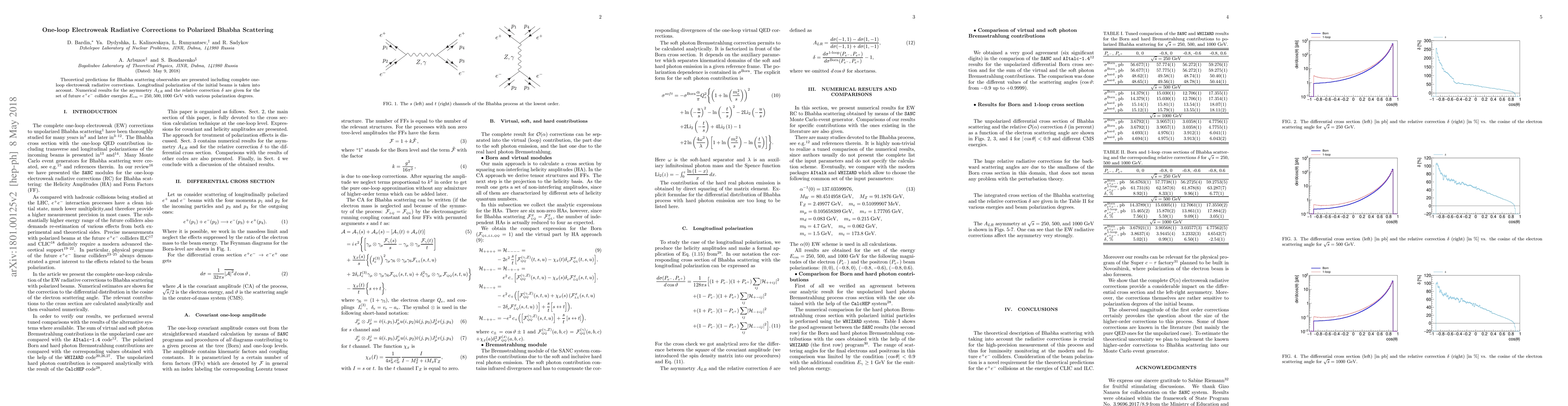 This paper presents theoretical predictions for Bhabha scattering including complete one-loop electroweak radiative corrections, focusing on the effects of longitudinal polarization. Numerical results for asymmetry $A_{LR}$ and relative correction $\delta$ are provided for center-of-mass energies of 250, 500, and 1000 GeV with varying polarization degrees.