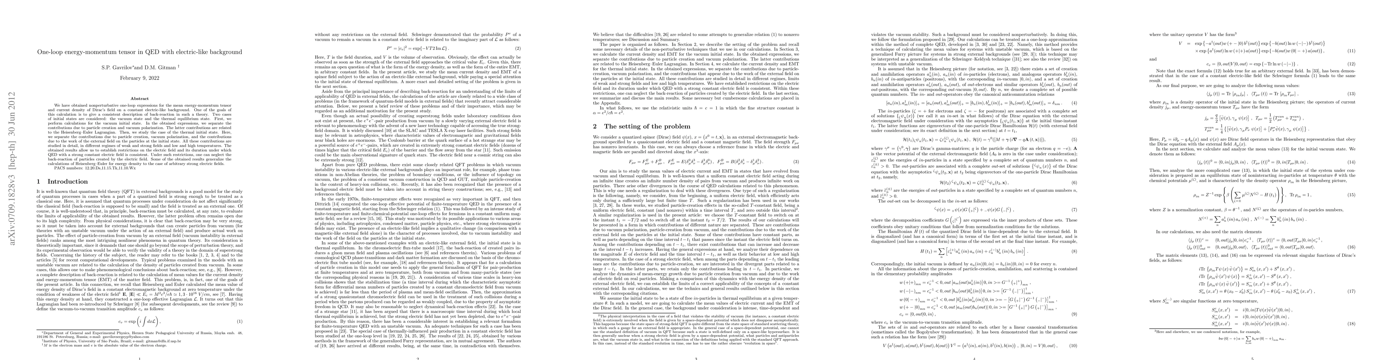 This paper derives nonperturbative one-loop expressions for the energy-momentum tensor and current density in QED under a constant electric-like background, considering both vacuum and thermal initial states. The study provides insights into back-reaction effects and establishes conditions for consistency in QED under strong electric fields.