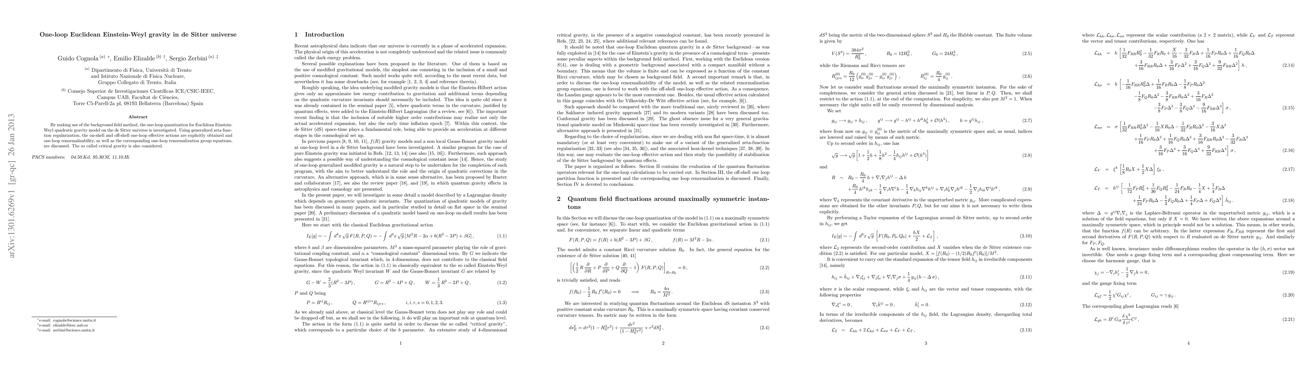 This paper investigates the one-loop quantization of Euclidean Einstein-Weyl gravity in a de Sitter universe using the background field method, obtaining explicit one-loop effective actions and discussing one-loop renormalizability and renormalization group equations, including considerations for critical gravity.