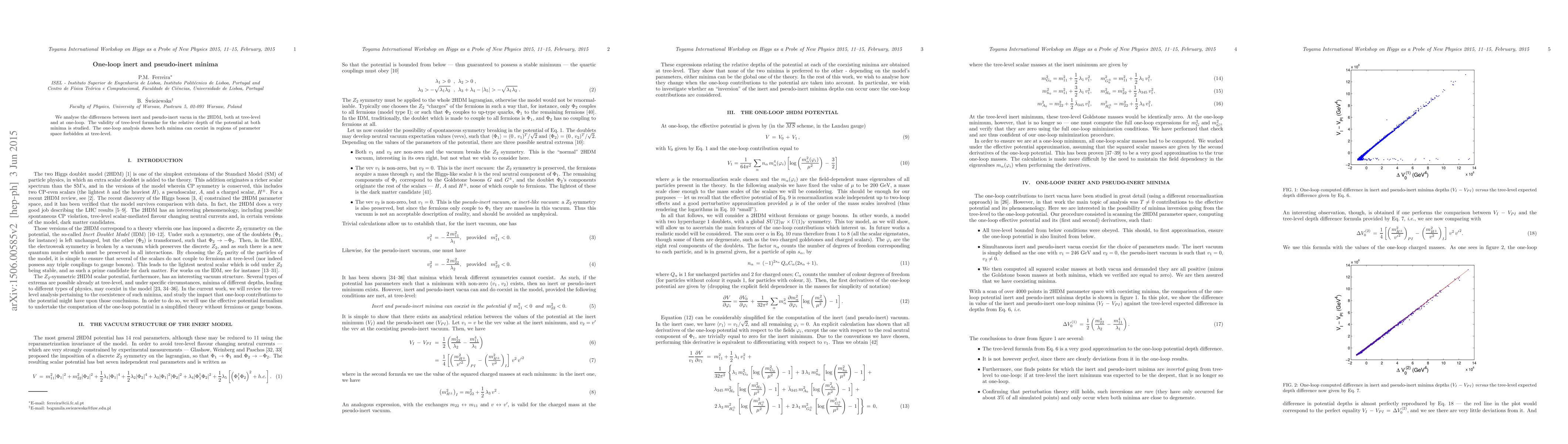 We analyse the differences between inert and pseudo-inert vacua in the 2HDM, both at tree-level and one-loop. The validity of tree-level formulae for the relative depth of the potential at both minima is studied. The one-loop analysis shows both minima can coexist in regions of parameter space forbidden at tree-level.