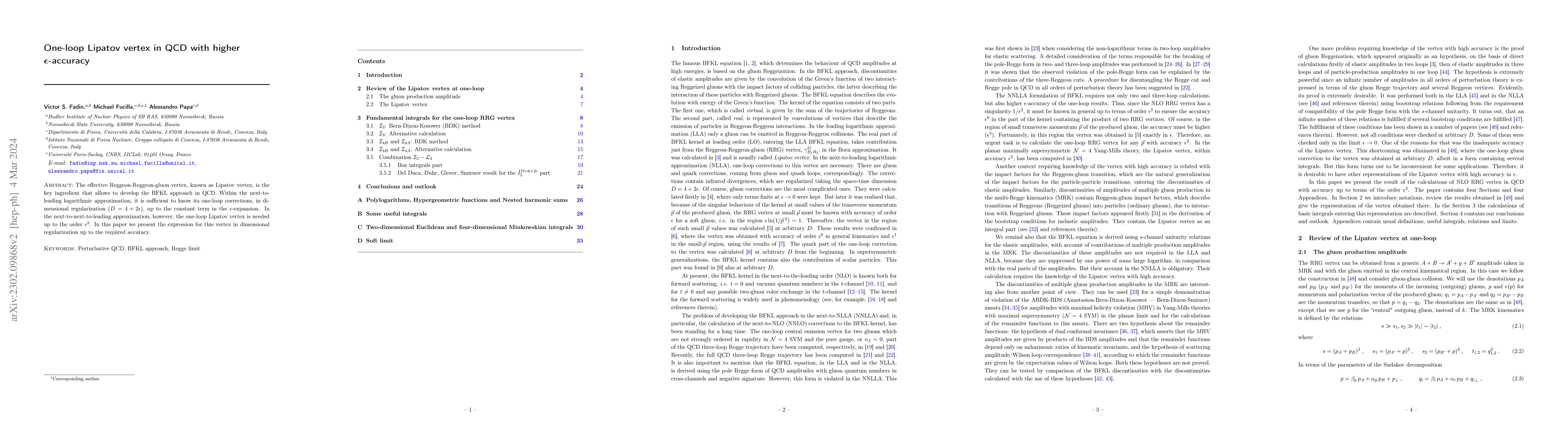 This paper computes the one-loop corrections to the Lipatov vertex in QCD, essential for the BFKL approach, up to $\epsilon^2$ accuracy in dimensional regularization. It provides the necessary vertex expression for next-to-next-to-leading logarithmic approximations.