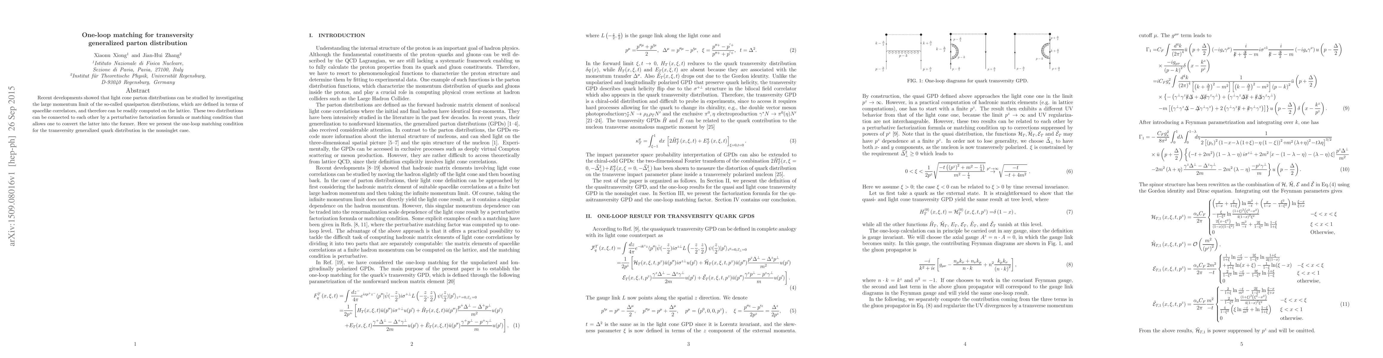 Recent developments showed that light cone parton distributions can be studied by investigating the large momentum limit of the so-called quasiparton distributions, which are defined in terms of spacelike correlators, and therefore can be readily computed on the lattice. These two distributions can be connected to each other by a perturbative factorization formula or matching condition that allows one to convert the latter into the former. Here we present the one-loop matching condition for the transversity generalized quark distribution in the nonsinglet case