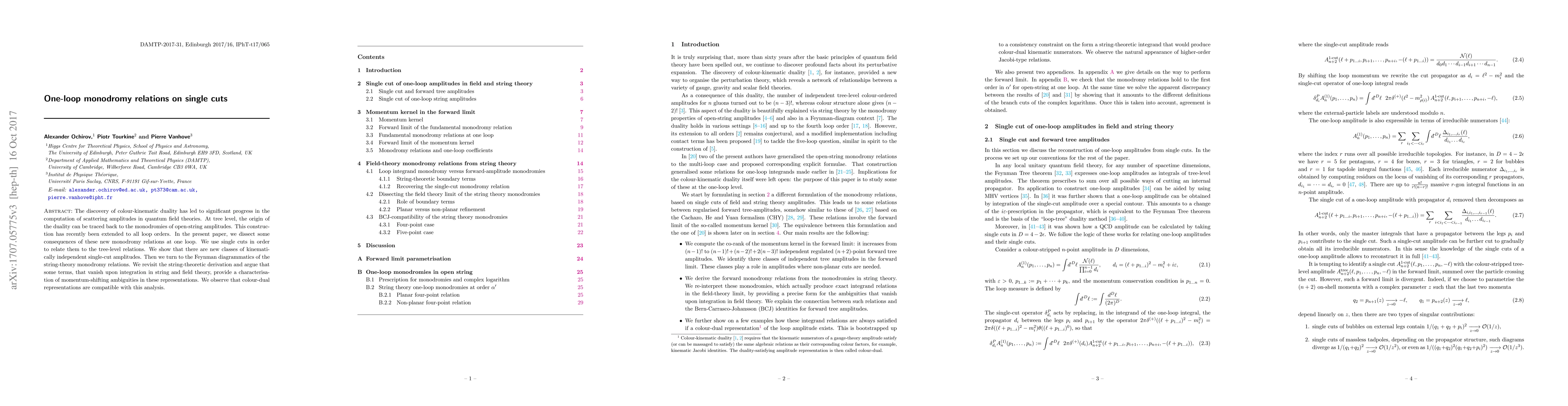 New classes of kinematically independent single-cut amplitudes were discovered, relating to string-theory monodromy relations, and found to characterize momentum-shifting ambiguities in representations.