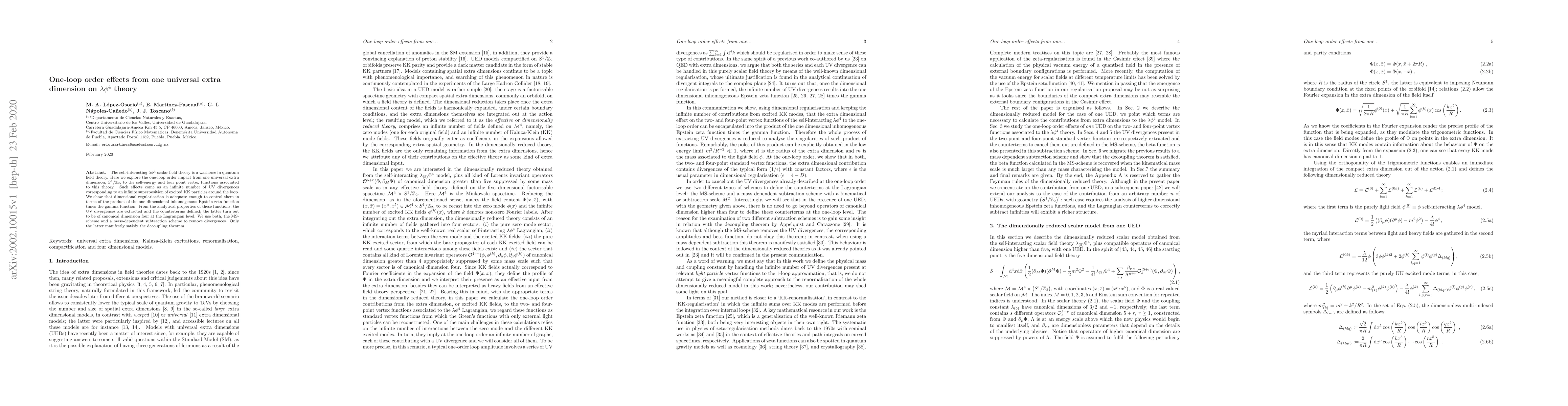 Researchers explored how adding a universal extra dimension to a complex quantum field theory affects its behavior at one-loop order, finding that counterterms can remove divergences and that the mass-dependent subtraction scheme satisfies a key theorem.