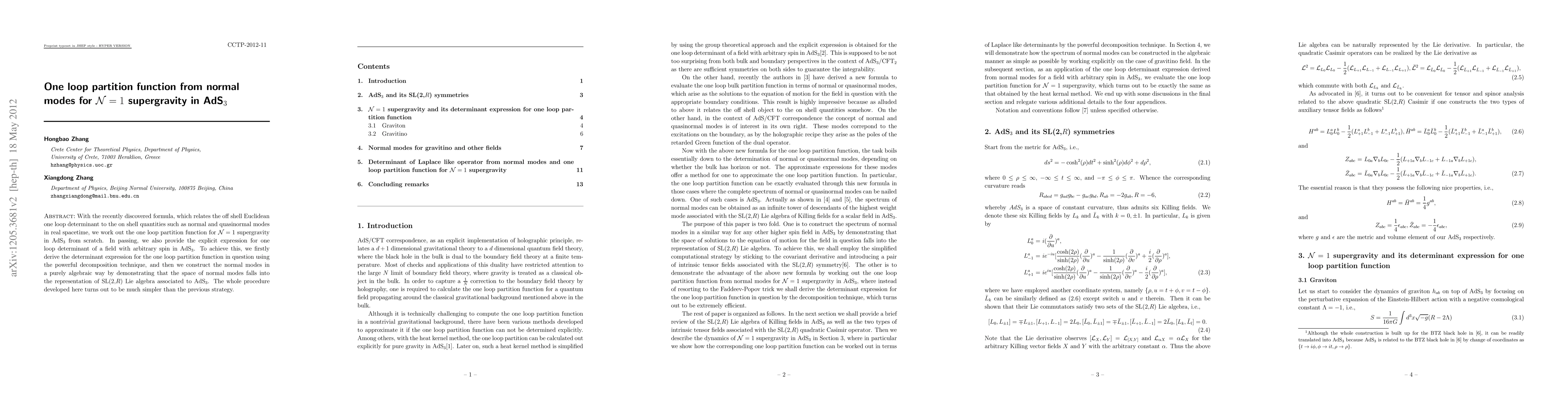 This paper calculates the one loop partition function for $\mathcal{N}=1$ supergravity in AdS$_3$ using normal modes and quasinormal modes, providing a simpler approach than previous methods. It also offers an explicit expression for the one loop determinant for fields with arbitrary spin in AdS$_3$.