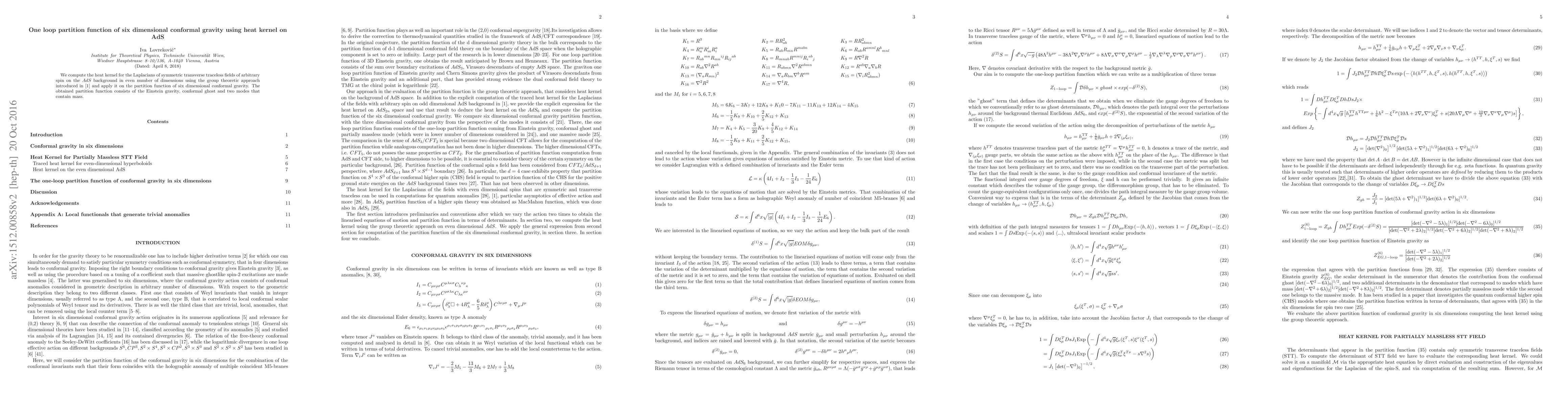 Summary: The paper computes the heat kernel for Laplacians on $AdS$ in even dimensions, applying it to the partition function of six-dimensional conformal gravity, resulting in contributions from Einstein gravity, conformal ghosts, and mass-containing modes.