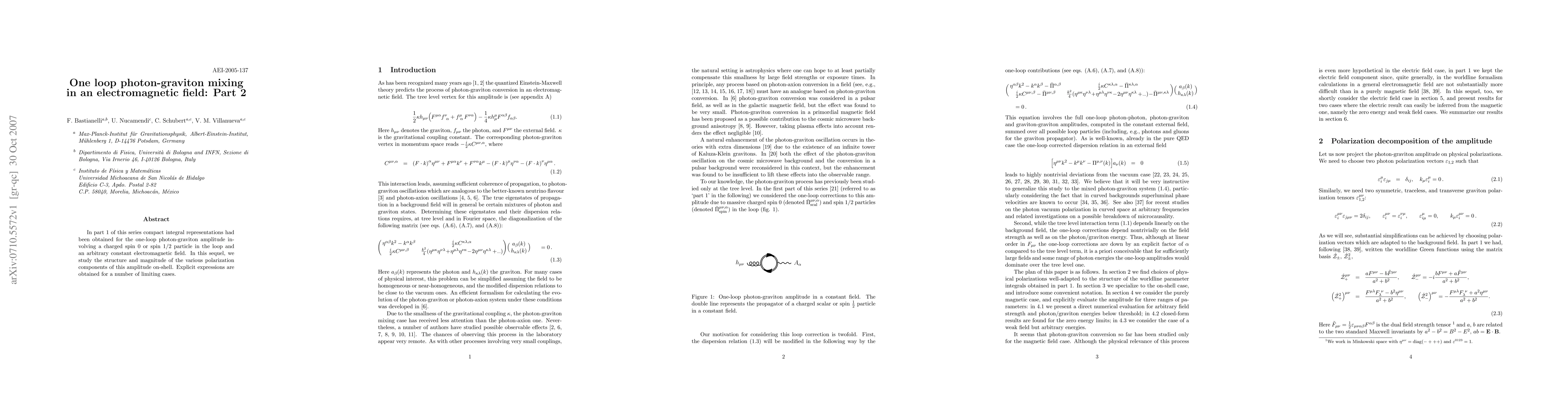 This paper builds on previous work by providing detailed analysis of the one-loop photon-graviton mixing amplitude, focusing on the structure and magnitude of its polarization components in various limiting cases. Explicit expressions are derived for these scenarios.
