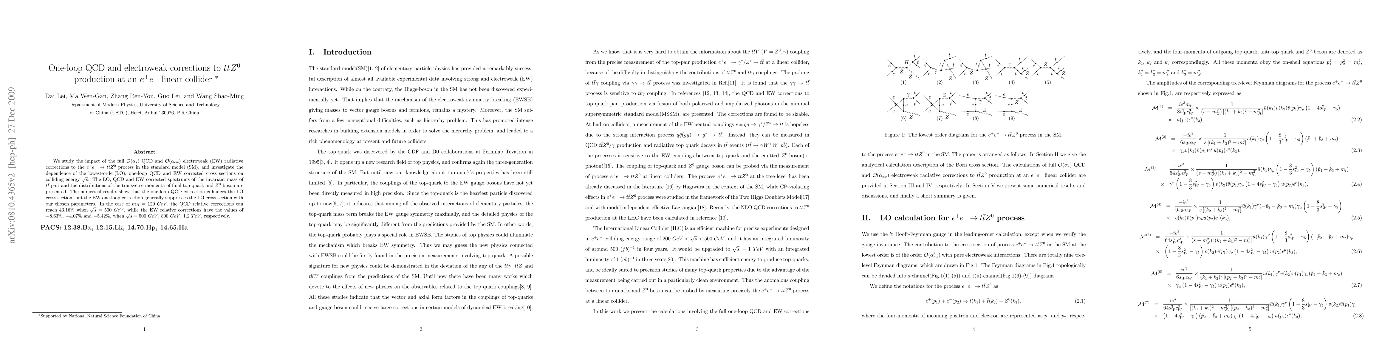 We study the impact of the full ${\cal O}(\alpha_{s})$ QCD and ${\cal O}(\alpha_{ew})$ electroweak (EW) radiative corrections to the $e^+e^- \to t \bar t Z^0$ process in the standard model (SM), and investigate the dependence of the lowest-order(LO), one-loop QCD and EW corrected cross sections on colliding energy $\sqrt{s}$. The LO, QCD and EW corrected spectrums of the invariant mass of $t\bar t$-pair and the distributions of the transverse momenta of final top-quark and $Z^0$-boson are presented. The numerical results show that the one-loop QCD correction enhances the LO cross section, but the EW one-loop correction generally suppresses the LO cross section with our chosen parameters. In the case of $m_H=120 GeV$, the QCD relative corrections can reach 43.16% when $\sqrt{s} = 500 GeV$, while the EW relative corrections have the values of -9.24%, -4.36% and -5.81%, when $\sqrt{s} = 500 GeV$, $800 GeV$, 1.2 TeV$, respectively.