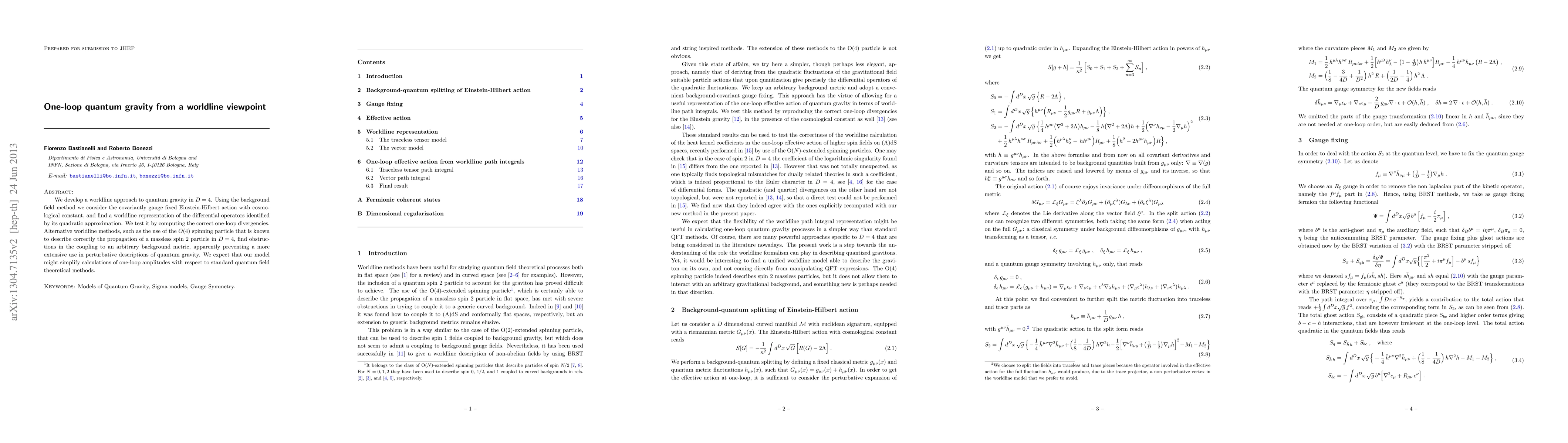 This paper develops a worldline approach to quantum gravity in four dimensions, successfully computing the one-loop divergences using the background field method. Unlike alternative methods, this approach avoids obstructions in coupling to arbitrary background metrics, potentially simplifying one-loop amplitude calculations.