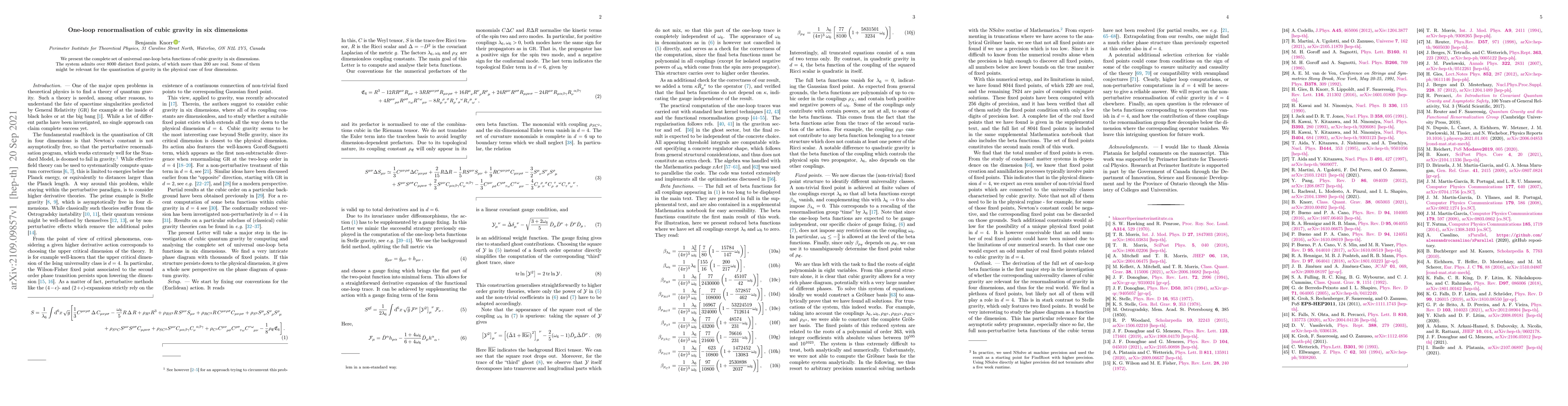 We present the complete set of universal one-loop beta functions of cubic gravity in six dimensions. The system admits over 8000 distinct fixed points, of which more than 200 are real. Some of them might be relevant for the quantisation of gravity in the physical case of four dimensions.