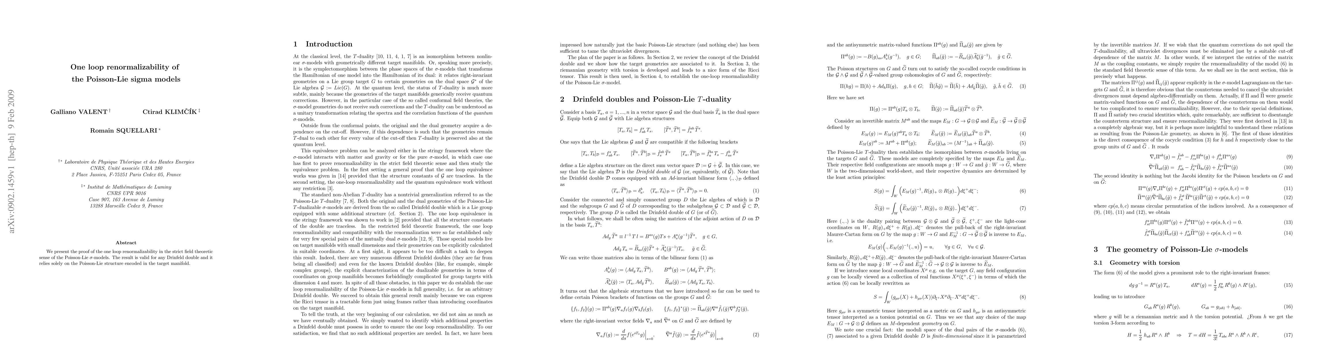We present the proof of the one loop renormalizability in the strict field theoretic sense of the Poisson-Lie sigma models. The result is valid for any Drinfeld double and it relies solely on the Poisson-Lie structure encoded in the target manifold.