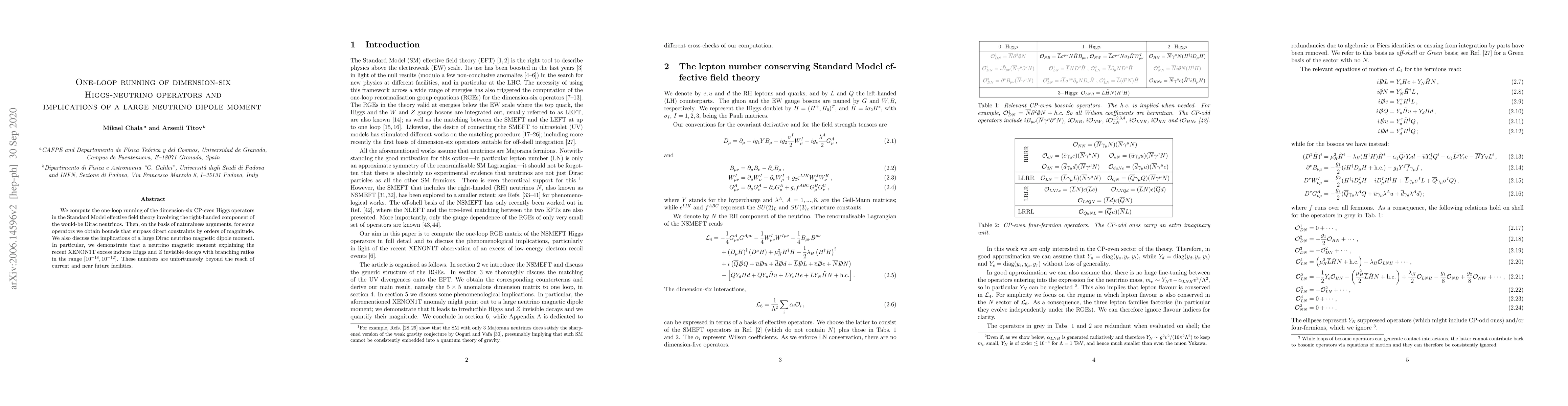 We compute the one-loop running of the dimension-six CP-even Higgs operators in the Standard Model effective field theory involving the right-handed component of the would-be Dirac neutrinos. We discuss the implications of a large Dirac neutrino magnetic dipole moment. In particular, we demonstrate that a neutrino magnetic moment explaining the recent XENON1T excess induces Higgs and $Z$ invisible decays with branching ratios in the range $[10^{-18}, 10^{-12}]$. These numbers are unfortunately beyond the reach of current and near future facilities.