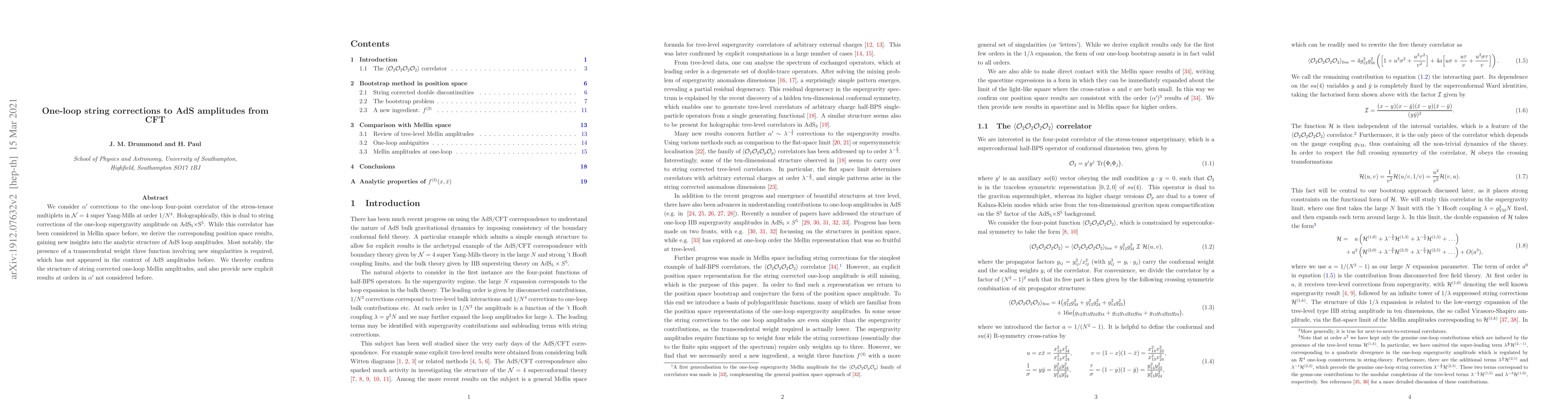 This paper investigates $\alpha'$ corrections to the one-loop four-point correlator in $\mathcal{N}=4$ super Yang-Mills, holographically corresponding to string corrections in AdS$_5\times$S$^5$. It presents new position space results, introducing a transcendental weight three function with novel singularities, confirming the structure of string corrected one-loop AdS amplitudes and providing new explicit results.