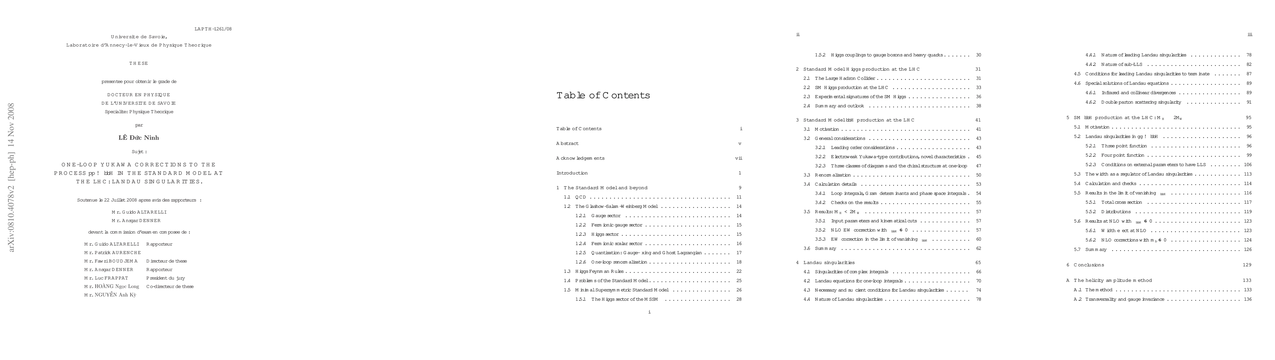 We calculate the leading electroweak (EW) corrections to the important process of Higgs production associated with two bottom quarks at the CERN Large Hadron Collider (LHC). Our study is restricted to the Standard Model (SM). At tree-level Higgs production in association with a b-quark pair proceeds through the small Yukawa bottom coupling in the Standard Model. Even in the limit where this coupling vanishes, EW one-loop effects, through the top-Higgs Yukawa coupling in particular, can still trigger this reaction. This contribution is small for Higgs masses around 120GeV but it quickly picks up for higher Higgs masses especially because the one-loop amplitude develops a leading Landau singularity and new thresholds open up. These effects can be viewed as the production of a pair of top quarks which rescatter to give rise to Higgs production through WW fusion. An important part of the thesis is devoted to the topic of Landau singularities in one-loop Feynman diagrams and application to the specific process of bbH production at the LHC. Since the 4-point leading Landau singularity is not integrable when the one-loop amplitude is squared, we regulate the cross section by taking into account the width of the internal top and W particles. This requires that we extend the usual box one-loop function to the case of complex masses. We show how this can be implemented analytically in our case. We study in some detail the cross section at the LHC as a function of the Higgs mass and show how some distributions can be drastically affected compared to the tree-level result.
