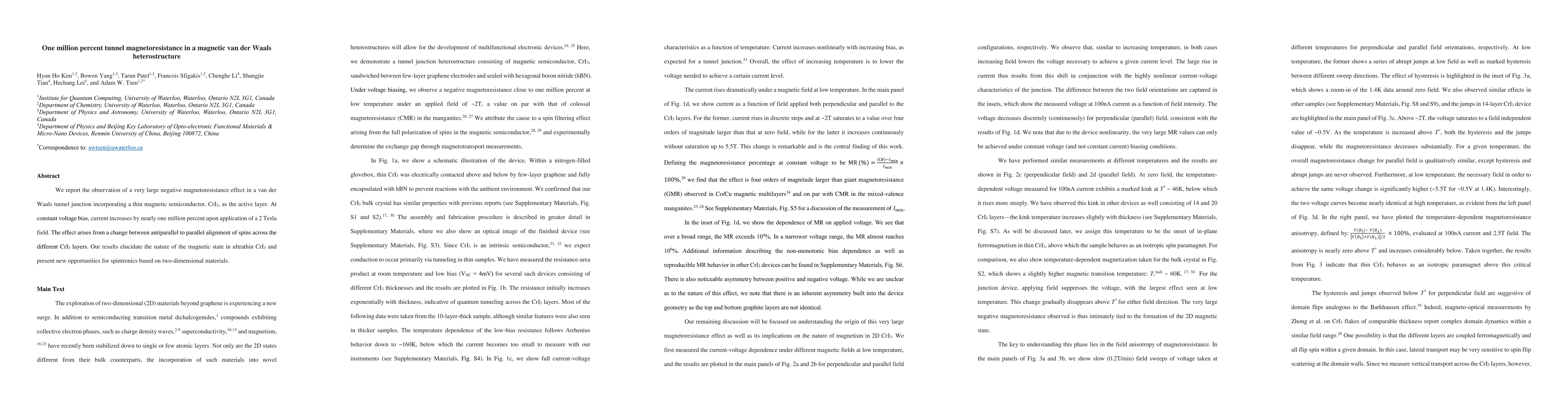 This paper reports a remarkable one million percent tunnel magnetoresistance in a magnetic van der Waals heterostructure, demonstrating a significant current increase under a 2 Tesla field due to spin alignment changes in the CrI3 layers, highlighting potential advancements in spintronics using two-dimensional materials.