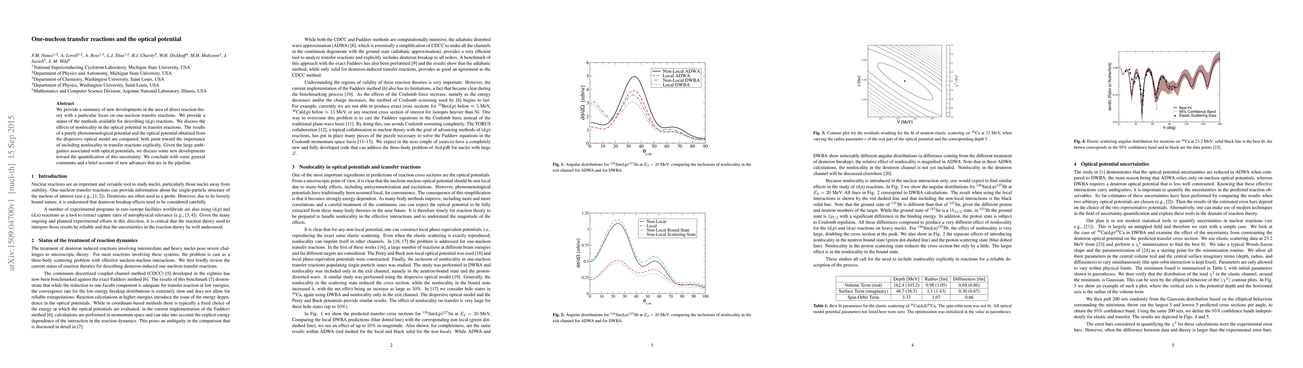 This paper reviews recent advancements in direct reaction theory, focusing on one-nucleon transfer reactions, and highlights the significance of nonlocality in the optical potential. It compares phenomenological and dispersive optical models, emphasizing the need for explicit nonlocality inclusion, and discusses methods to quantify uncertainties in optical potentials.