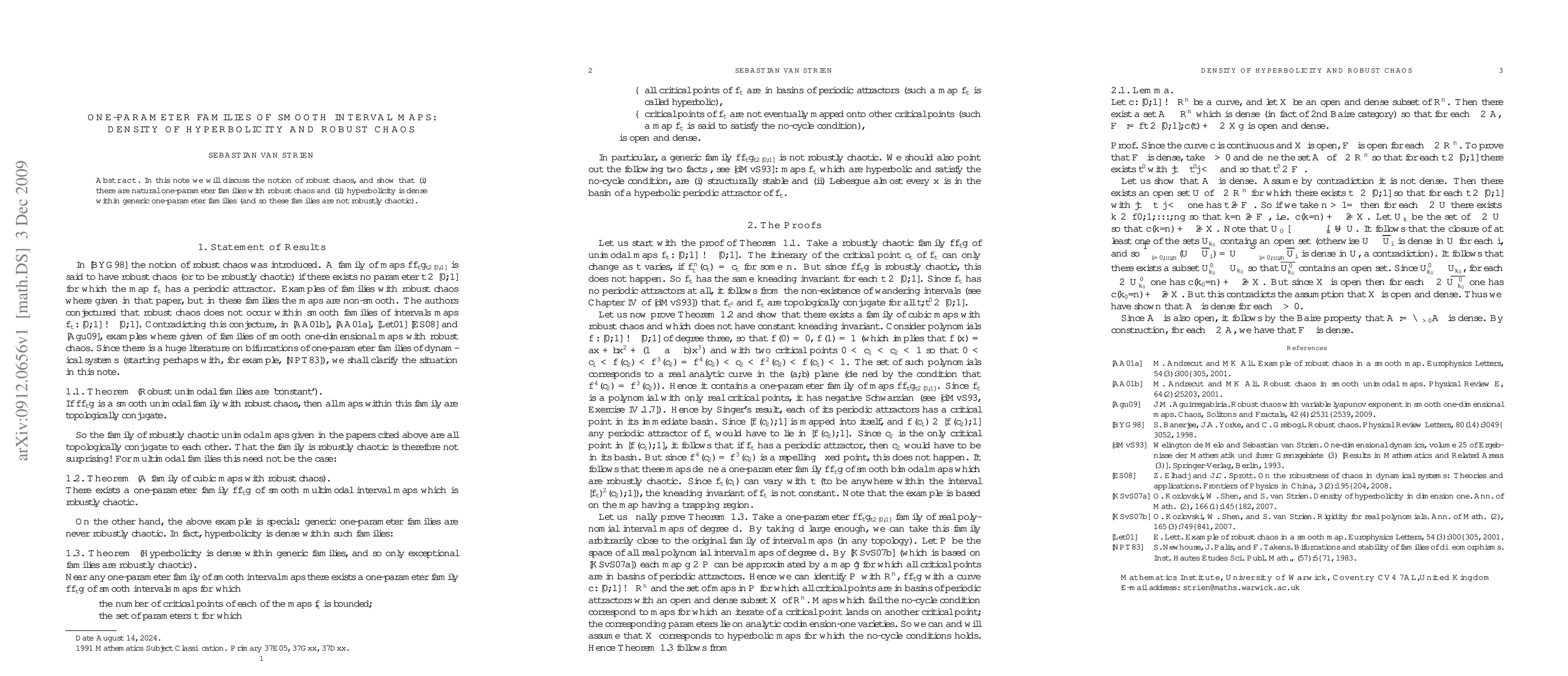 In this note we will discuss the notion of robust chaos, and show that (i) there are natural one-parameter families with robust chaos and (ii) hyperbolicity is dense within generic one-parameter families (and so these families are not robustly chaotic).