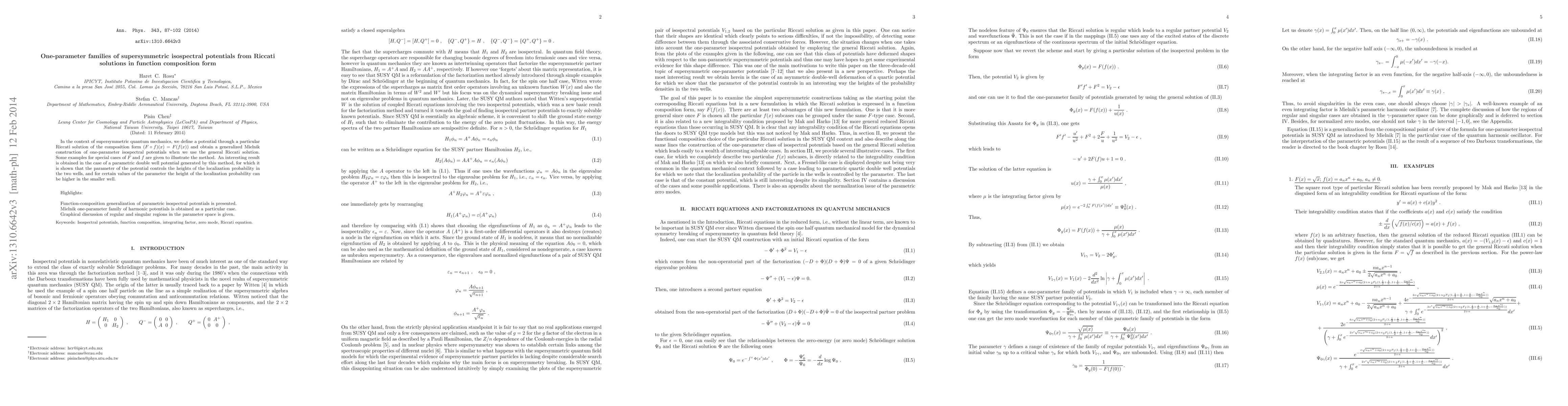 This paper explores the construction of one-parameter families of supersymmetric isospectral potentials using Riccati solutions in function composition form, specifically F(f(x)). It demonstrates the generalized Mielnik construction and provides examples, notably showing how the parameter influences the localization probability in a parametric double well potential.