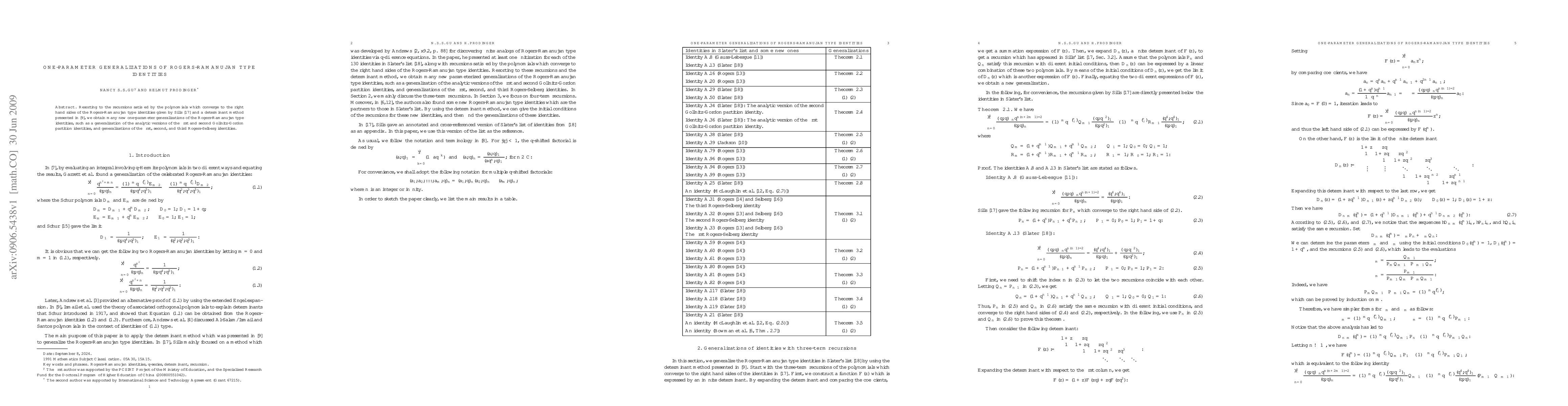 This paper presents new one-parameter generalizations of Rogers-Ramanujan type identities using recursions and determinant methods, including generalized G\"{o}llnitz-Gordon and Rogers-Selberg partition identities.
