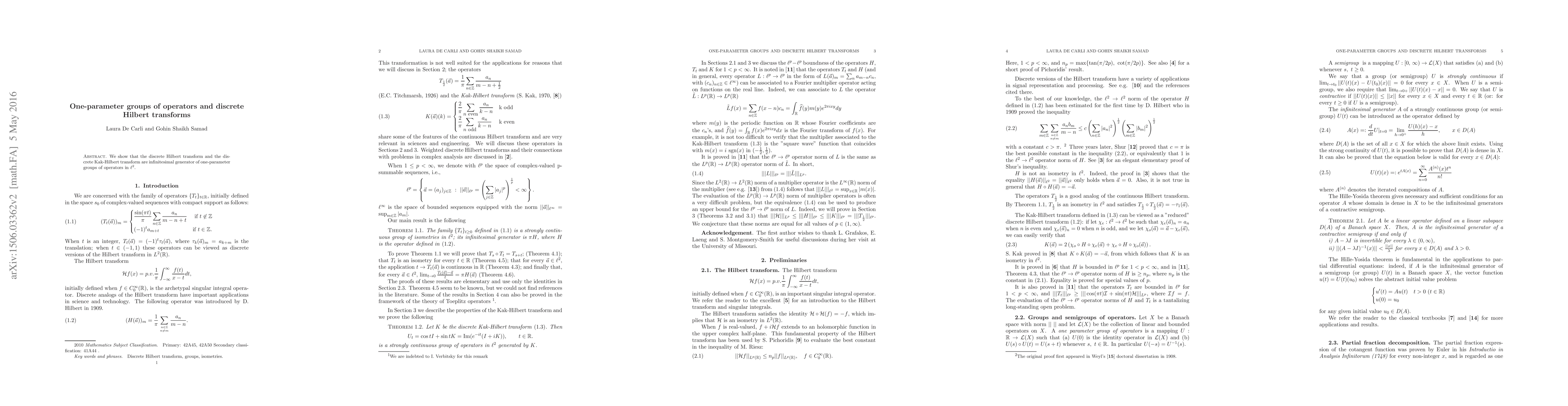 Summary: This paper demonstrates that the discrete Hilbert transform and the discrete Kak-Hilbert transform serve as infinitesimal generators for one-parameter groups of operators, establishing their role in the mathematical framework of operator theory.