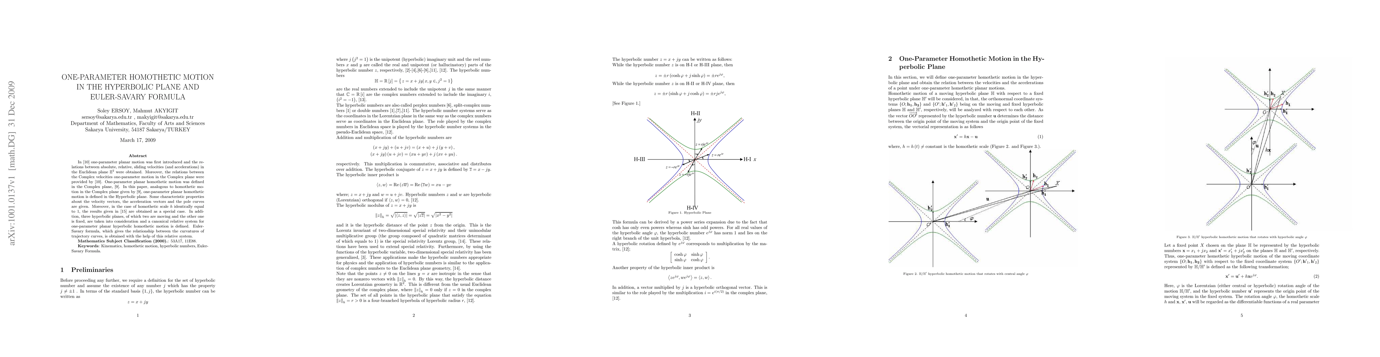 In \cite{Mul} one-parameter planar motion was first introduced and the relations between absolute, relative, sliding velocities (and accelerations) in the Euclidean plane $\mathbb{E}^2$ were obtained. Moreover, the relations between the Complex velocities one-parameter motion in the Complex plane were provided by \cite{Mul}. One-parameter planar homothetic motion was defined in the Complex plane, \cite{Kur}. In this paper, analogous to homothetic motion in the Complex plane given by \cite{Kur}, one-parameter planar homothetic motion is defined in the Hyperbolic plane. Some characteristic properties about the velocity vectors, the acceleration vectors and the pole curves are given. Moreover, in the case of homothetic scale $h$ identically equal to 1, the results given in \cite{Yuc} are obtained as a special case. In addition, three hyperbolic planes, of which two are moving and the other one is fixed, are taken into consideration and a canonical relative system for one-parameter planar hyperbolic homothetic motion is defined. Euler-Savary formula, which gives the relationship between the curvatures of trajectory curves, is obtained with the help of this relative system.