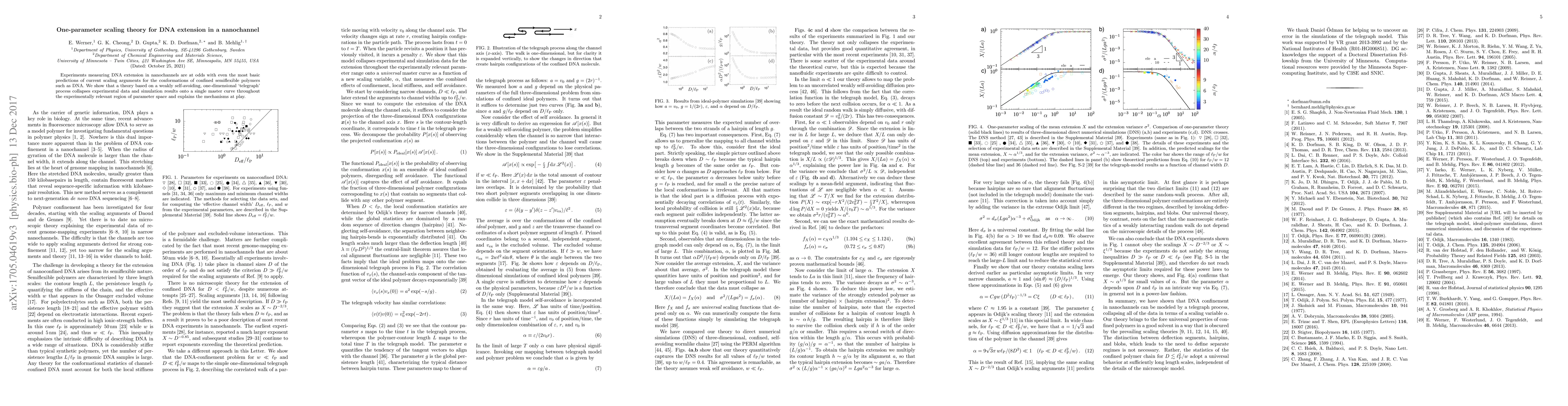This paper proposes a one-parameter scaling theory based on a "telegraph" process to explain DNA extension in nanochannels, resolving discrepancies between experimental data and existing scaling models for confined semiflexible polymers. The new theory aligns experimental and simulation results onto a single master curve.