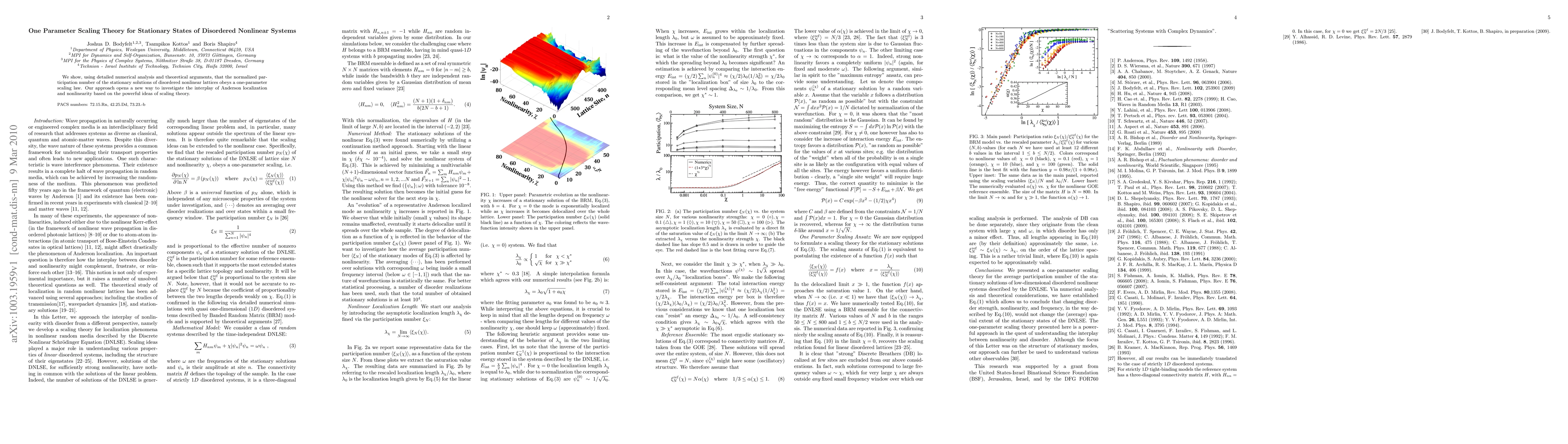 We show, using detailed numerical analysis and theoretical arguments, that the normalized participation number of the stationary solutions of disordered nonlinear lattices obeys a one-parameter scaling law. Our approach opens a new way to investigate the interplay of Anderson localization and nonlinearity based on the powerful ideas of scaling theory.