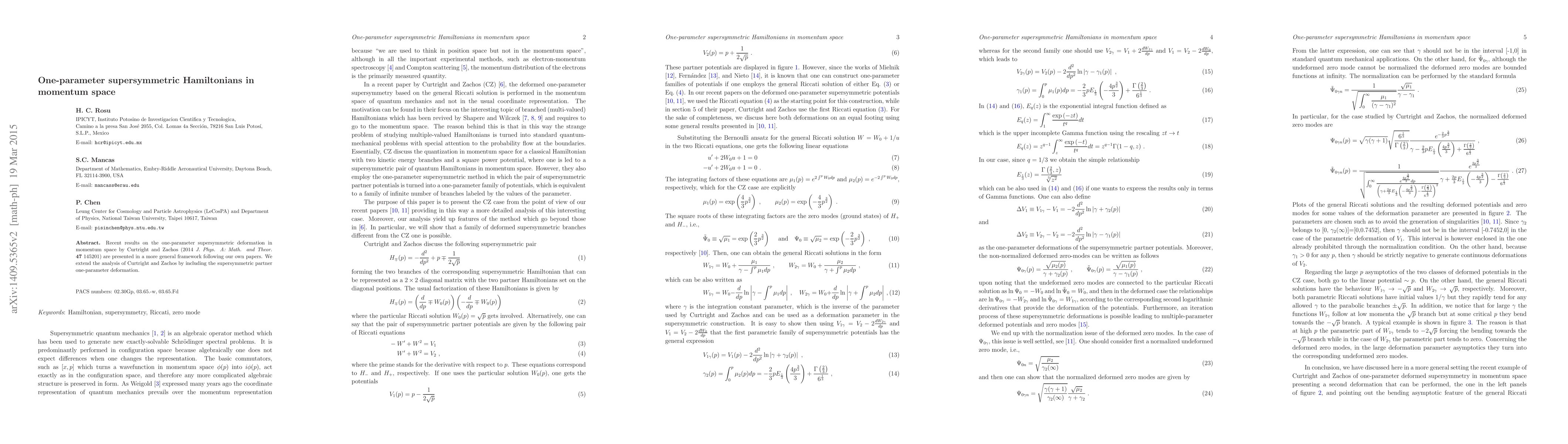 Researchers extend a previous study on supersymmetric Hamiltonians in momentum space to include a new one-parameter deformation, providing a more comprehensive framework for understanding this phenomenon.